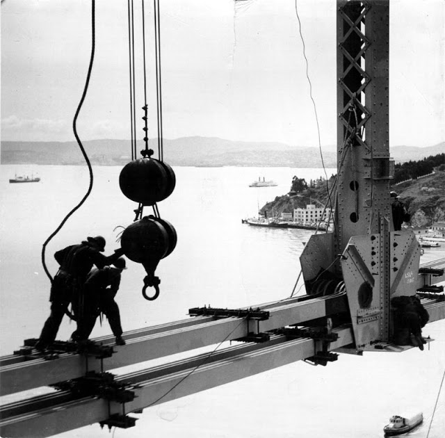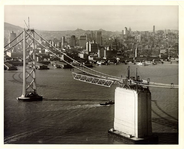 A historical photo collection from San Francisco Public Library that shows construction of the San Francisco-Oakland Bay Bridge in the 1930s.
