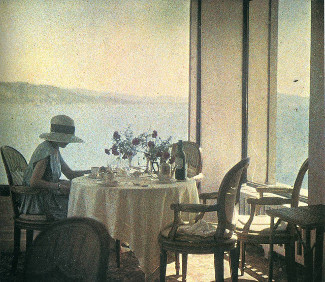 Lartigue is best known for his black-and-white photographs of the European chic set at play on the Riviera, in the Alps, in Paris in the 1920s and 1930s. But he shot in color a lot, too—some 40 percent of the 111,000 negatives on file at the Lartigue foundation, as it turns out. He used Autochrome throughout the 1920s, when he was busily snapping photos of his first wife, Bibi, and their friends holidaying on the Côte d’Azur.