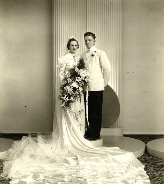 Take a look at these pictures to see beautiful brides in their cool wedding gowns from the 1930s.