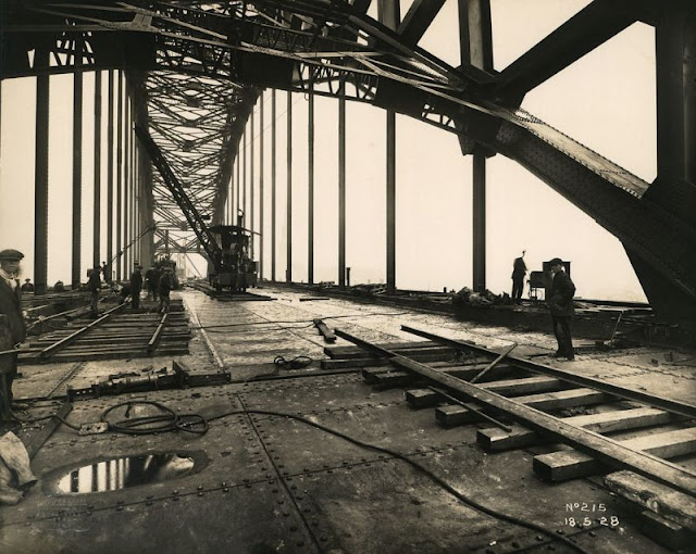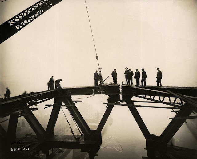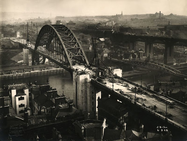 These photographs from Tyne & Wear Archives & Museums were taken by James Bacon & Sons of Newcastle and document its construction from March 1927 to October 1928. They belonged to James Geddie, who was Chief Assistant Engineer on the construction of the Bridge with Dorman, Long & Co. Ltd. of Middlesbrough.
