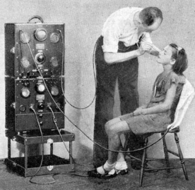 Other salons followed Arden’s lead and facial treatments incorporating diathermal heat became quite common in the 1930s, in part because the machines could also be used to remove hair through thermolysis.