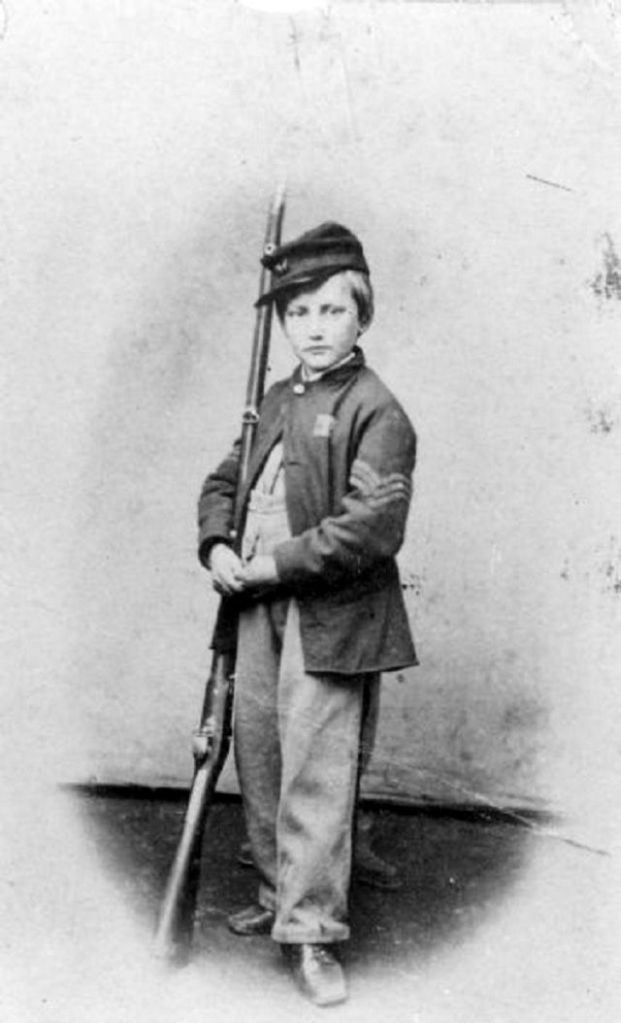 When President Abraham Lincoln in May 1861 issued the call for volunteers to serve in the Union army for a three year term, one of those who tried to answer was Ohio resident John Clem. Not yet 10 years old, Clem’s service was refused by the newly formed 3rd Ohio. Undeterred, Clem later tried to join the 22nd Michigan, where his persistence won over the unit’s officers. They agreed to let him follow the regiment, adopting him as a mascot and unofficial drummer boy. The officers also chipped in to pay his monthly salary of $13 before he finally was allowed to officially enlist in 1863.