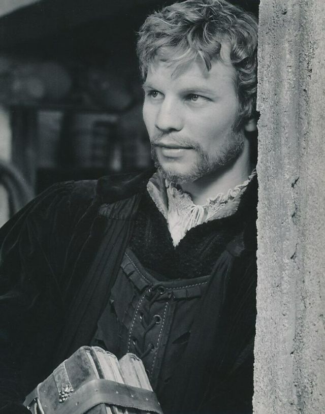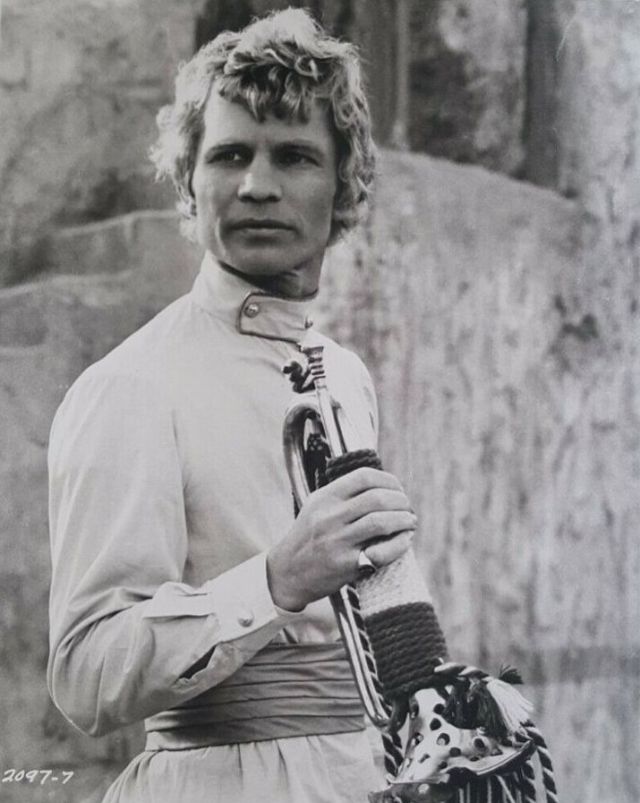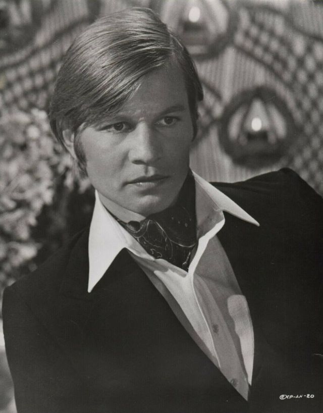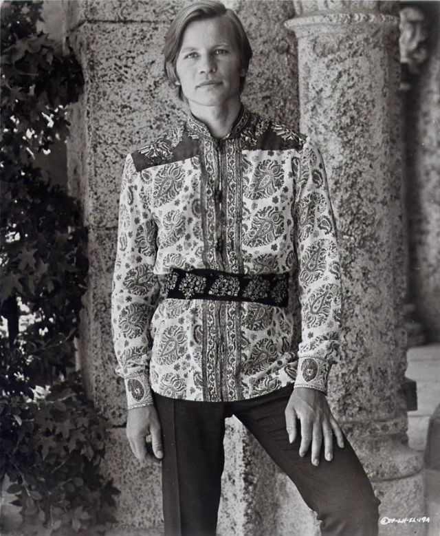 Born 1942 born in Fulmer, Buckinghamshire, English actor Michael York made his film debut as Lucentio in The Taming of the Shrew (1967). He then was cast as Tybalt in Zeffirelli’s 1968 film adaptation of Romeo and Juliet. He starred in The Guru (1969), then played an amoral bisexual drifter in Something for Everyone (1970).