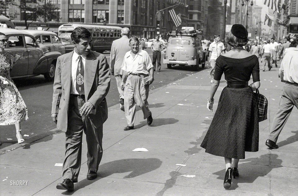 Steve McQueen in his 1957 Jaguar XKSS.Marilyn Monroe in her cat-eye glasses, 1950s.Little girl wearing Mickey Mouse ear hat sending a postcard to her family in Disneyland, Anaheim, California, 1957.Kid deep in latest news, 1953.Dale Strickland, 5, carries his puppy in the flood, Pico Rivera, February 25, 1958.An Italian girl filling her motorcycle with gasoline, 1950s.Charlton Heston riding a scooter during filming of Ben Hur, 1959.Marilyn Monroe in ‘Monkey Business’, 1952.Two models on a “Don’t Walk” sign, New York City, 1958Fisherman’s Wharf window reflection, Seattle, Washington, 1958.Central Park, New York, 1956.Man and Woman Smoking, NYC, 1959.Grace Kelly in 1954Little girl making a flag, 1950s.Shy kid with glasses, Paris, 1956.Dad helps tie his girl shoes, 1954.The watchers, 1950.The salesman, Naples, Italy, 1958.Times Square, 1952.Cinema in the outskirts of Naples, Italy, 1956.Boy and his puppy, 1950s.Boy with his kitten, 1953.Children playing with an old tire on the streets of Salford, Manchester, 1951.The polio vaccine, developed by Jonas Salk, was made available to the public, 1956.Late night TV show legend, Johnny Carson reads a story to his three sons, Chris, Cory, and Richard, 1955.Children singing in a snow cave, Niigata Prefecture, Japan, 1956.Little girl and her dog, 1950Watching over the ancient marble statue “Aphrodite of Milos” or better known as the Venus de Milo at the Louvre Museum in Paris, 1954.Men taking a smoko during construction of Auckland Harbour Bridge, 1959.The New York skyline at night, 1954.Alfred Hitchcock poses with the 4-foot prop phone used for the close-up shots in his film, “Dial M for Murder,” 1954.A boy proudly shows off his ray gun, 1950sMomma Jayne Mansfield posing on Vine Street with her oldest child Jayne Marie Mansfield, 1953.The Marine and the kitten, 1953. Sergeant Frank Praytor feeding the orphan kitten he named ‘Mis Hap’ that he saved during the Korean War.Walt Disney stands in front of the unfinished ‘Sleeping Beauty’s Castle’ in 1955.Best friends, 1950Playing in the snow in the driveway, Warren, Ohio, 1951.Two children on a bank in Alabama, 1956.Choosing Tabu perfume from a coin-operated ‘Perfumatic’ vending machine, 1952.Dinner and a movie, dining in the car at a drive-in movie theater in 1952.Here are stacks of 4.5 megabytes of data in 62,500 punched cards in 1955.In 1956, Elvis Presley gave his mother this pink Cadillac.Hiroshima atomic bomb survivor Shigeki Tanaka won the Boston Marathon in 1951.Manhattan Beach in 1957Model Frances Richards smokes a pack of cigarettes all on one cigarette holder, 1955Laurel and Hardy sitting in a pub in a small village in England chatting with the locals, Christmas, 1952Cigarettes were promoted by doctors until the early 1950s1951 Buick LeSabre.New York, September 1952.Watching Boeing 377 Stratocruiser, 1951.