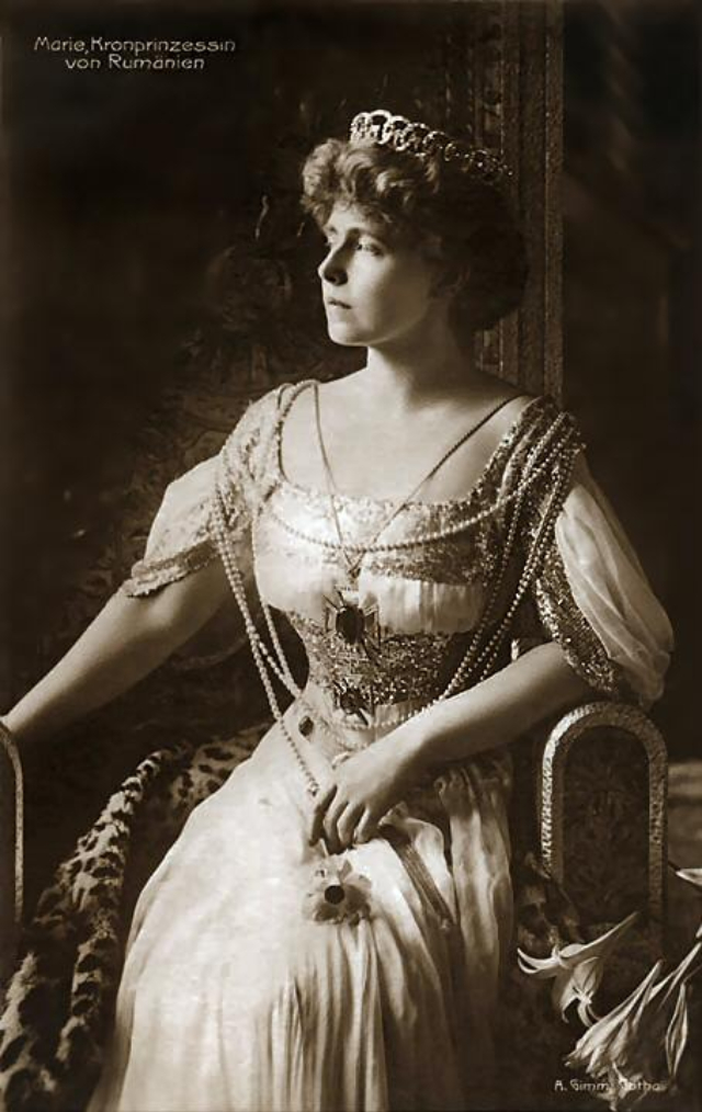 A projected marriage between Marie and her cousin, George of York, the future George V, encouraged by Queen Victoria and supported by their fathers, the Duke of Edinburgh and the Prince of Wales, failed because of the opposition of the young heirs’ mothers, the Duchess of Edinburgh and the Duchess of Wales. Instead, on January 10, 1893 at Sigmaringen Castle, after a brief engagement, Marie married Ferdinand of Hohenzollern-Sigmaringen, the heir to the Romanian throne. In 1914, after the death of King Carol I, Ferdinand and Marie became Romania’s monarchs. In the summer of 1916, Romania entered the First World War as part of the Allied Powers.