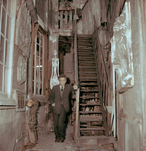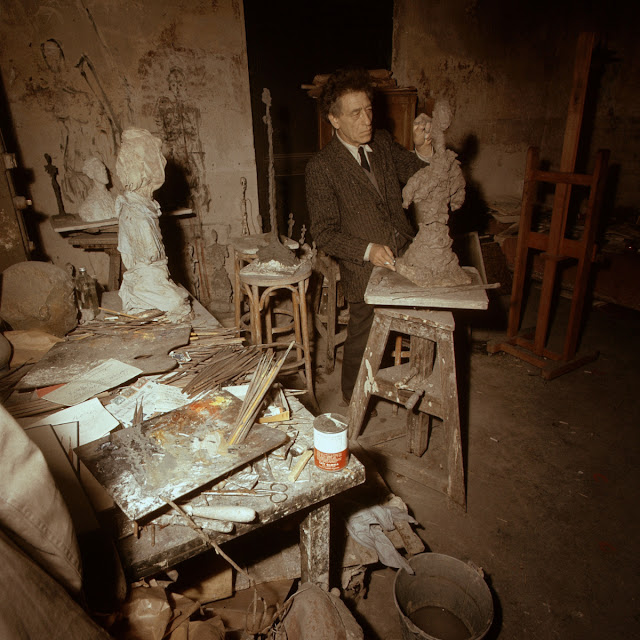 Until his death in 1966, Giacometti occupied the small, shabby Paris studio he bought in 1926, despite the commercial, critical, and financial success he experienced during much of his life. His American biographer James Lord referred to the studio as a “dump” and a tree branch famously grew through one of its walls.