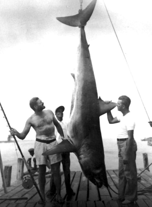 Once, he caught a marlin that was estimated to have been over 1,000 pounds before sharks reached it. He learned the hard way that by shooting the sharks he released blood into the water and attracted more sharks, which took most of the marlin’s body. This tale is probably the basis for the novel The Old Man and the Sea.