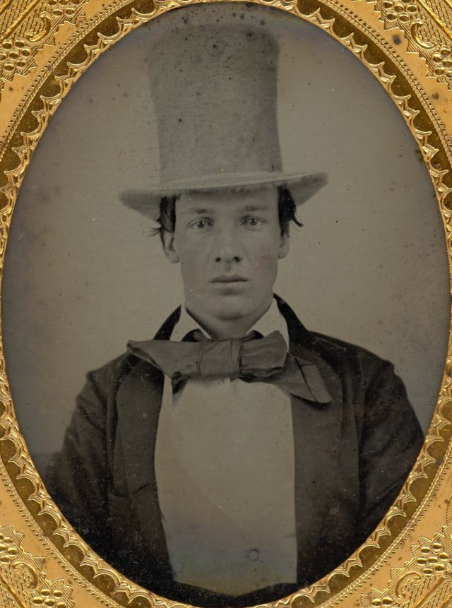 The 1840s and the 1850s saw it reach its most extreme form, with ever-higher crowns and narrow brims. The stovepipe hat was a variety with mostly straight sides, while one with slightly convex sides was called the “chimney pot”.