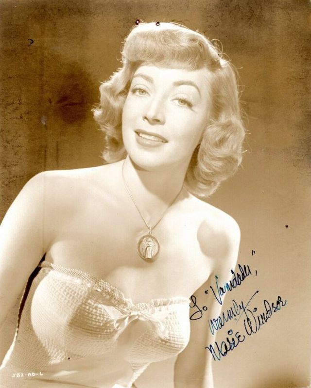Her first film contract, with Warner Bros. in 1942, resulted from her writing jokes and submitting them to Jack Benny. Windsor said she submitted the gags under the name M.E. Windsor “because I was afraid he might be prejudiced against a woman gag writer”. When Benny finally met Windsor, “he was stunned by her good looks” and had a producer sign her to a contract. After a tenure with Metro-Goldwyn-Mayer in which the studio “signed her, put her in two small roles and then promptly forgot her”, she signed a seven-year contract in 1948 with The Enterprise Studios.