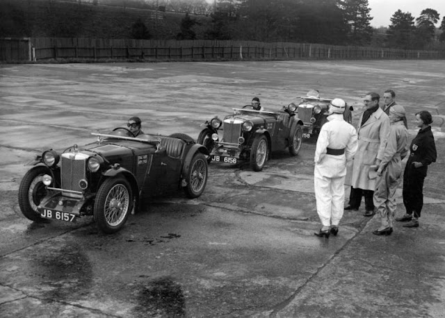 The three racing MGs were entered for Le Mans by land speed record breaker George Eyston and nicknamed the ‘Dancing Daughters’ after a popular variety act of the time. The drivers were : Car 54 – Margaret Allen & Coleen Eaton, Car 55 – Doreen Evans & Barbara Skinner, Car 56 – Joan Richmond & Miss Joan Simpson. July 1935.
