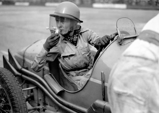 Eileen Ellison in a Bugatti during the ‘mountain race’ at Brooklands, 1934.