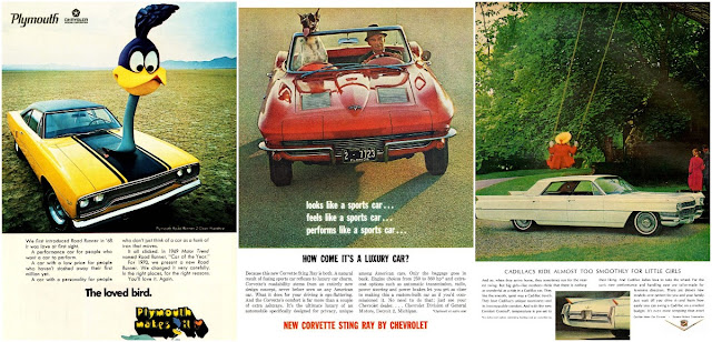 Many of the ads chosen for this article, however, show none of those inspiring notions. Rather, they generally took a more dramatic approach to elicit interest, with certain elements sometimes nearly overshadowing the vehicle they were attempting to sell. These types of ads were usually only a portion of a larger coordinated campaign, however, that also included a host of more conventional layouts. Nevertheless, they are intriguing.