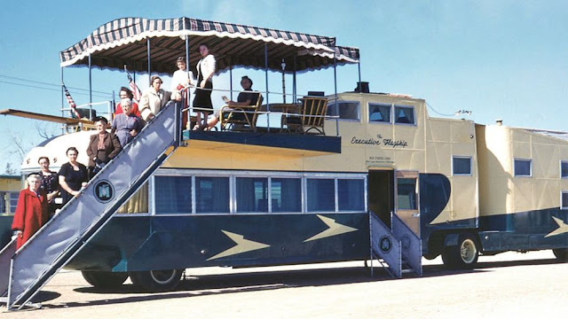 The Executive Flagship was designed by the company president William B. MacDonald. It was a 65-foot long, self-powered articulating mobile home with 10 wheels weighing in at 18 tons.