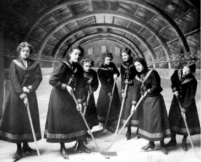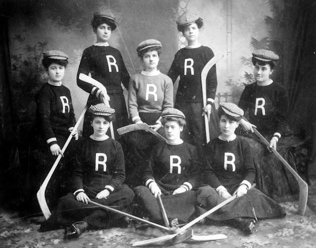The first formal women’s match happened in Ontario in 1891; however, women’s teams didn’t really get going until the 1910s and 1920s when college teams started to form in the US and especially in Canada. Below are some vintage photos of women’s ice hockey teams from between the 1900s and 1920s: