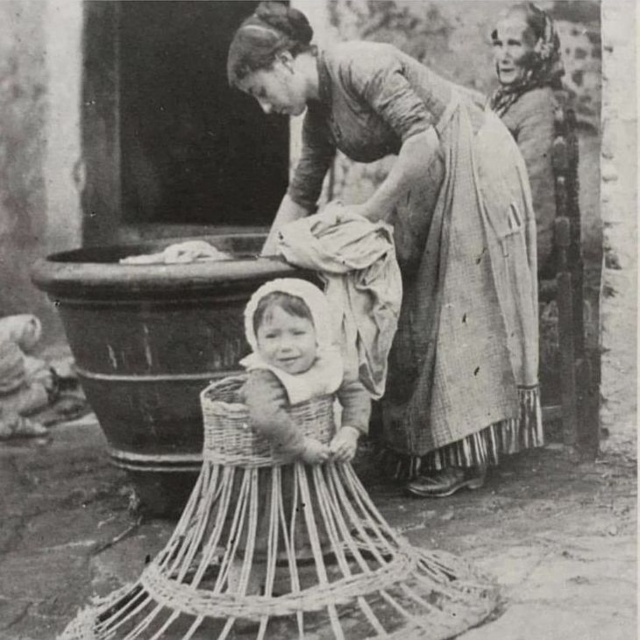 Go-cart was a common historical name for the wheeled version. Other alternatives were also used. A baby-runner was a padded wooden ring, set at the height of the baby’s waist, on a pole that was fixed into the floor and ceiling. The baby was placed inside the ring and able to move in a circle around the pole. This prevented the baby from reaching dangerous places, such as hot ovens.