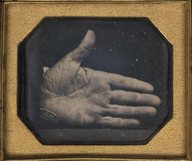 1845 daguerreotype of Walker’s branded hand by photographers Southworth & Hawes. The image is reversed; it was his right hand that was branded.