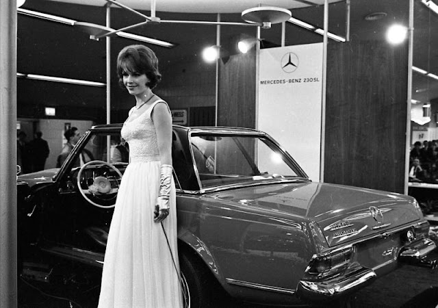 These black and white photos were taken by Michael Dolan that show the New York Auto Show in 1965. “This show was at the 59th. St. Coliseum in New York City, now demolished. This was a user friendly exhibition space. A pleasure to go to either, a boat show , a flower show or a car show. The upper mezzanine circled the exhibition floor and besides a great view, housed all the smaller vendors.”