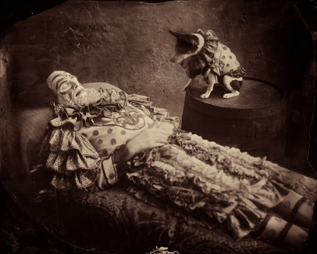 This is one of 30 photographs Berkman took that was included in art installation called “Predicting the Past—Zohar Studios: The Lost Years” that was exhibited in the Contemporary Jewish Museum in San Francisco. Other equally bizarre images include a sepia-toned woman with bottle curls wearing formal Victorian dress sitting in a chair calmly knitting what appears to be a condom.
