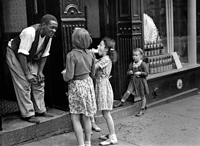 Levitt spoke about her early pictures shot on the streets in the 1930s: “It was a good neighborhood for taking pictures in those days, because that was before television. There was a lot happening. And the older people would be sitting out on the stoops because of the heat. Those neighborhoods were very active.”