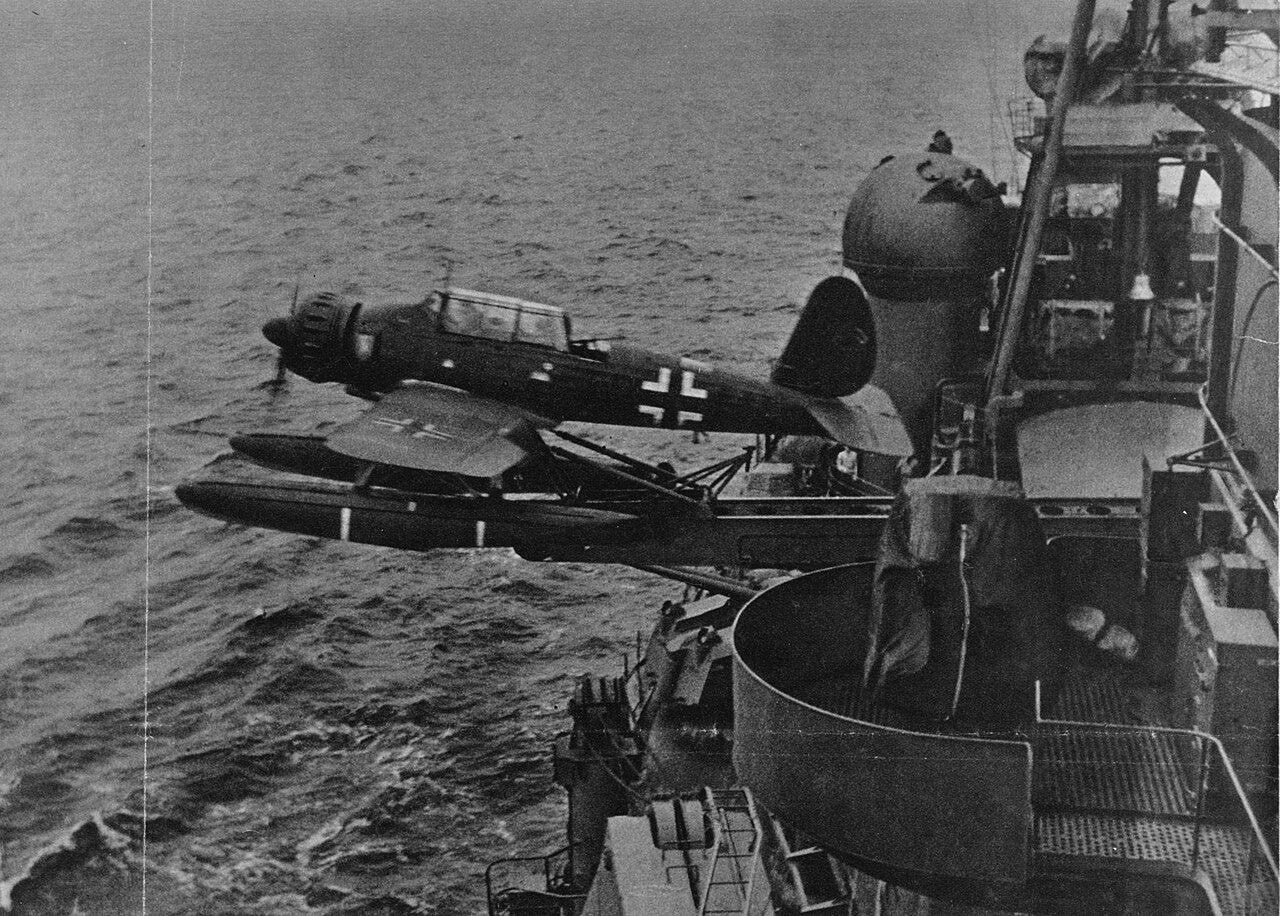 Image: One of Admiral Hipper’s three Arado Ar 196 floatplanes being launched in 1942.