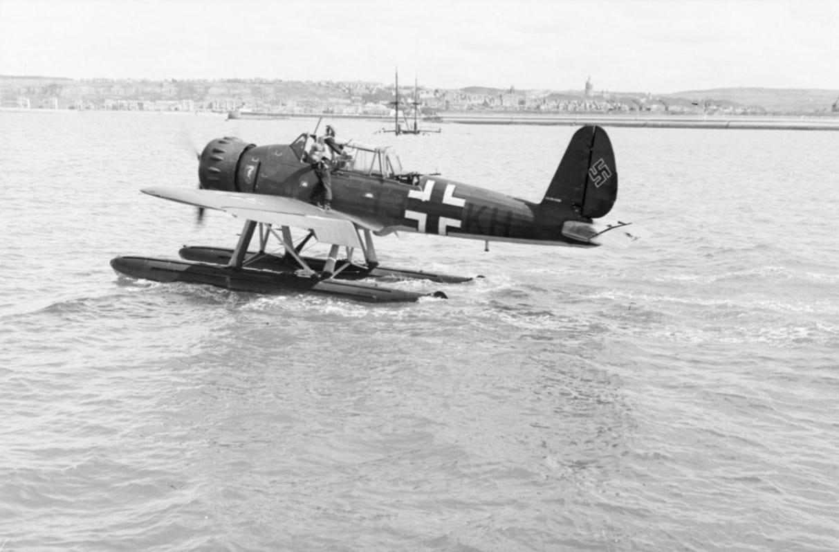 Image: A German Arado Ar 196 floatplane seen here is operating near Boulogne-sur-Mer, a strategic port in northern France, during the late summer of 1940. This aircraft had been part of the 1st Squadron of Bordfliegergruppe 196, a Luftwaffe unit ordered to provide shipborne reconnaissance and coastal patrol duties. This floatplane was the Kriegsmarine’s primary vessel in its class, deployed aboard cruisers and battleships, as well as at various coastal bases like Boulogne, following the swift German advance through France. Its robust twin-float design enabled the aircraft to execute water landings and takeoffs more easily, making it an ideal candidate for maritime surveillance, convoy shadowing, and anti-submarine operations.