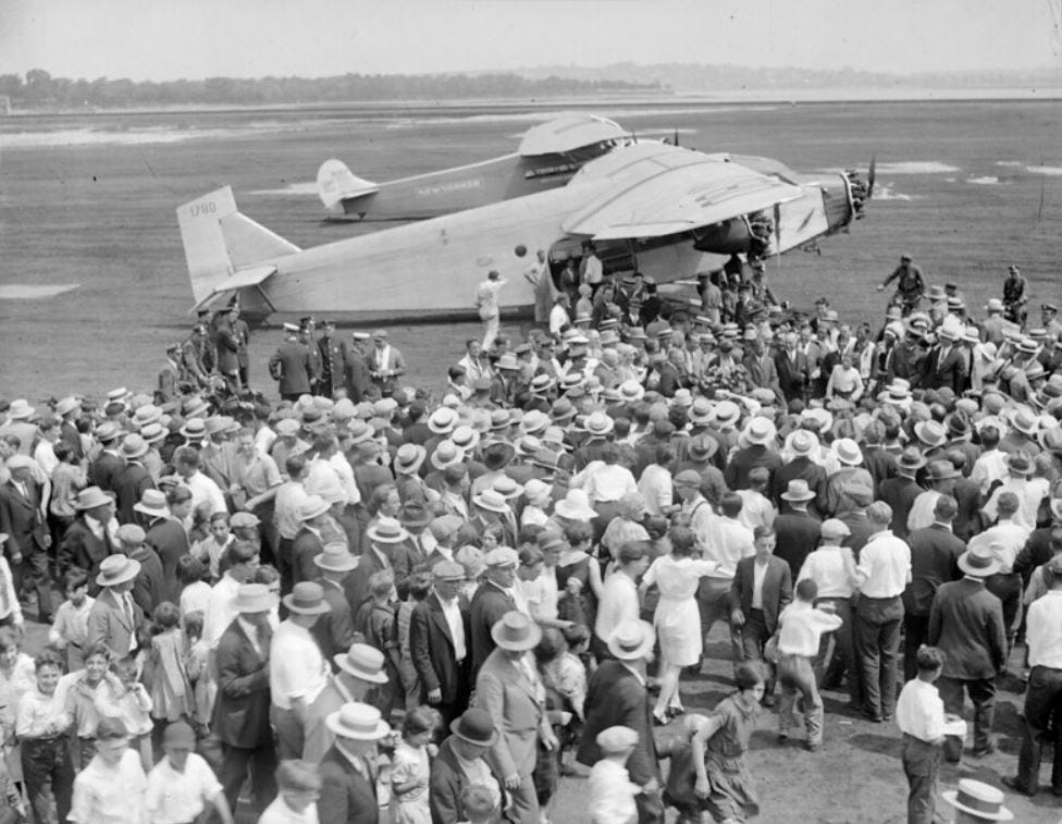 Image: Amelia Earhart arrives at East Boston Airport in a Ford Trimotor. July 1920.