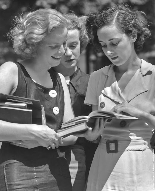 Members of the “Greenwich Village Follies” learning to become good cooks and bakers at the Mary Ryan Tea Room in Greenwich Village, New York, ca. 1925.Madame Lubovska teaching student dancers from the National American Ballet school, August 1924.Trainee fashion models learn how to carry themselves gracefully by balancing books on their heads at a school of modelling and deportment in the West End of London, 1925.Lady detectives learning their trade. Mr. Kersey is showing them how to apprehend a suspect, April 1927.Students at the Heatherley School of Art in Baker Street, London, painting a nude model in the portrait studio, November 1927.A young woman taking flying lessons at Brooklands School, 1929.Dancing school pupils practice en plein air at Worthing in East Sussex, May 1933.A college student prepares to try out a small glider at the London Gliding Club on Dunstable Downs, 15th April 1933.Students at a dance school dancing in front of a large, round mirror, ca. 1935.A group of ladies learning “The Charleston” dance, March 1935.International pupils at an outdoor physical education class at the English-Scandinavian Summer School in Milner Court, Sturry, Kent, 7th August 1935.Two female members of a keep fit group learn boxing techniques as part of self defence lessons, 7th December 1935.Glenn Erikson teaching pupils how to relax their throats for improved voice control, 1936. The Paramount actresses are Kay Gordon, Jane Rhodes and Jeanne Perkins who are all training for “Florida Special”.Would-be skiers taking lessons from an Austrian ski champion in the gym, learning that suppleness is essential in skiing, 20th February 1936.Lucie Clayton instructs pupils in the art of correct posture by balancing a glass and book on their heads at her finishing school in Old Cavendish Street, London, 25th November 1936.A school girl from Pengworn Ladies College, Cheltenham learning tha art of balancing to cultivate good carriage in walking by balancing a plate on her head whilst standing on one leg on a pole and spinning a hoop with her knee! 14th December 1936.A record number of students, a third of them girls, have enrolled for the winter session at the East Anglian Institute of Agricultural Studies in Chelmsford, Essex1st November 1937.Trainee nurses examine a model of a human body to learn anatomy, 7th October 1938.Students at the Royal Academy of Dramatic Art in Bloomsbury, London, applying make-up backstage, 29th October 1938.Undergraduates of Oxford University walking to lectures, well equipped with books, 6th November 1938Four students at a Liverpool drama school enjoy a lesson in face-slapping, 4th February 1939.Military training has been introduced to the schools in Budapest. Here the pupils of a girl’s school are issued with their arms, 4th February 1939.One of the students shows a little more leg than necessary at a cricket match at the Goldsmith’s Art College end of term party in London. The theme of the occasion is “A Roman Holiday”French university students dance the jitterbug in Paris, 1949.18-year old London student Mercy Haystead enjoys a plate of spaghetti, whilst on holiday in Italy as an official guest of the town of Positano, September 1949.18-year old London student Mercy Haystead on holiday in Italy as an official guest of the town of Positano, 24th September 1949.Overseas students studying ballet at the Royal Academy of Dance (RAD) Training Centre, London, 3rd November 1949. Left to right: Denise Shalovsky of Southern Rhodesia (now Zimbabwe), Felicia Zaymes and Valerie Goddard of South Africa. Shalovsky is training to teach ballet.Three female students reading a book circa 1950s.