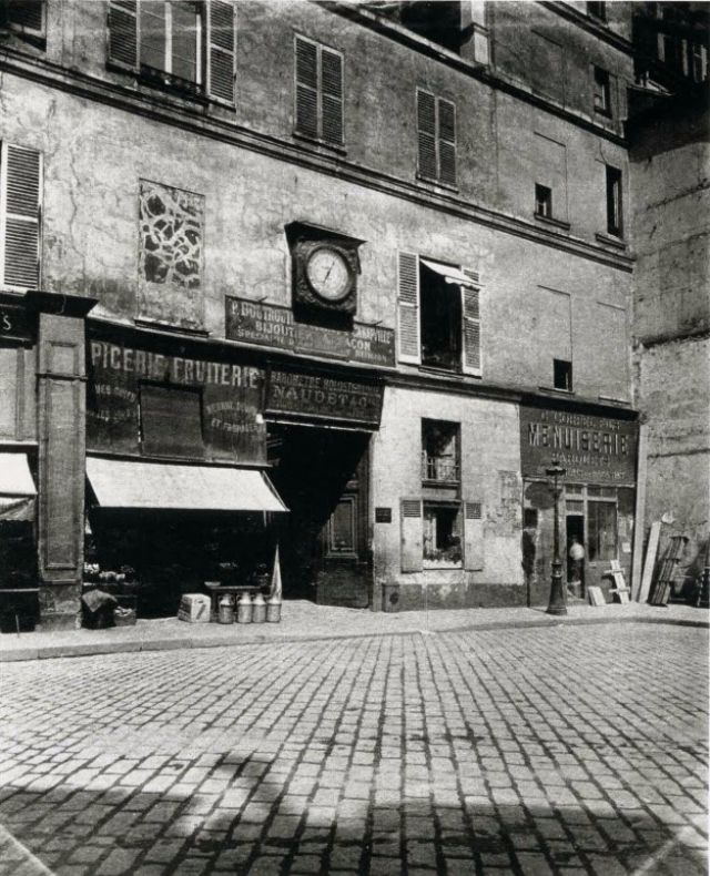 Between 1897 and 1927 he captured the old Paris in his pictures. His photographs show the city in its various facets: narrow lanes and courtyards in the historic city center with its old buildings, of which some were soon to be demolished, magnificent palaces from the period before the French Revolution, bridges and quays on the banks of the Seine, and shops with their window displays. He photographed stairwells and architectural details on the façades and took pictures of the interiors of apartments. His interest also extended to the environs of Paris.