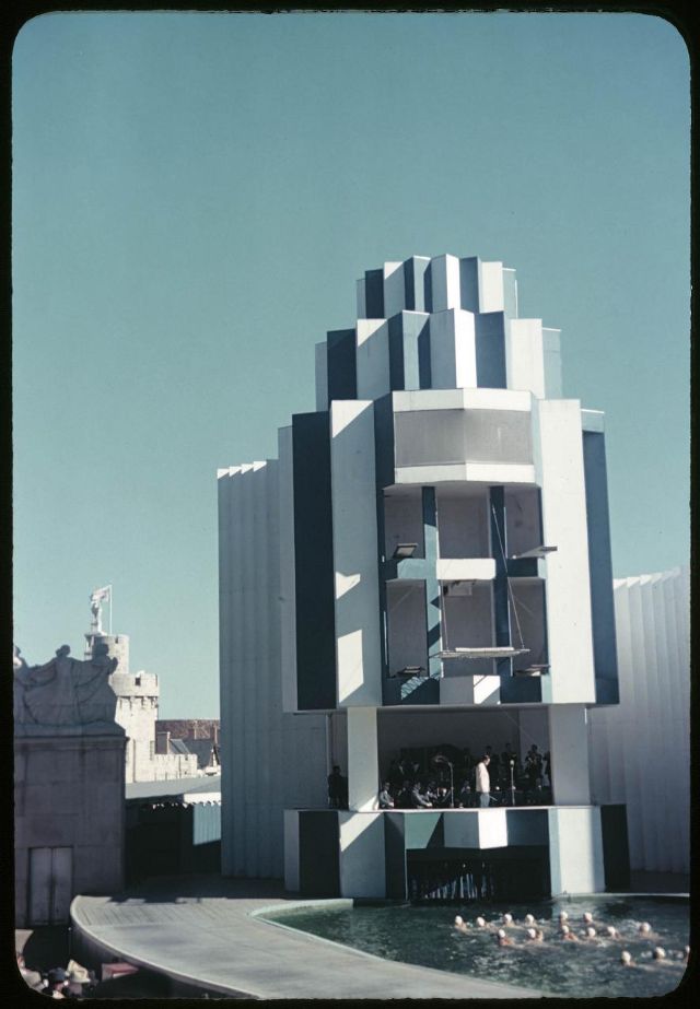 The back side of the Kodak Exhibition BuildingA couple poses for photographing at Eastman KodakAmphitheater and Billy Rose AquacadeAmphitheater and Billy Rose AquacadeAmphitheater and Billy Rose AquacadeAmphitheater and Billy Rose AquacadeAmphitheater and Billy Rose AquacadeAmphitheater and Billy Rose AquacadeBallantine InnFord BuildingFrench Pavilion on the Court of Peace with Trylon and PerisphereFrench Pavilion on the Court of PeaceGeneral Motors BuildingGeorge Washington statue behind “Time and Fates of Man,” sundial, with the United States Federal Building in the backgroundGlobe along the Court of States, in front of the West Virginia and Georgia buildings with tower of the USSR (Soviet) Pavilion aboveKodak BuildingKodak BuildingMetals BuildingNational Cash Register BuildingNew York City Building with Trylon and PerisphereNight view of Trylon and PerisphereThe Avenue of Pioneers, looking toward the Schaefer CenterThe back side of the Kodak Exhibition BuildingThe Japan Pavilion next to the USSR (Soviet) PavilionThe Lagoon of Nations with the Italian Pavilion in the rearThe New Jersey Building along the Court of StatesThe Pennsylvania Building along the Court of States with tower of the USSR (Soviet) Pavilion above.The USSR (Soviet) PavilionTrylon and PerisphereTrylon, Perisphere and HeliclineU.S. Marine Corps marching in front of the USSR (Soviet) Pavilion1939 New York World’s Fair1939 New York World’s Fair1939 New York World’s Fair1939 New York World’s Fair1939 New York World’s Fair1939 New York World’s Fair1939 New York World’s Fair1939 New York World’s Fair1939 New York World’s Fair