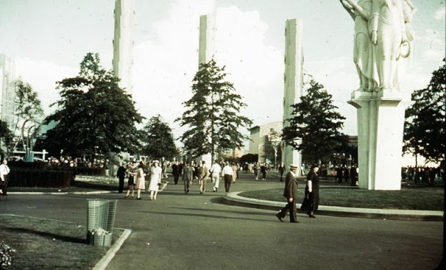 When World War II began four months into the 1939 World’s Fair, many exhibits were affected, especially those on display in the pavilions of countries under Axis occupation. After the close of the fair in 1940, many exhibits were demolished or removed, though some buildings were retained for the 1964–1965 New York World’s Fair, held at the same site. (Wikipedia)