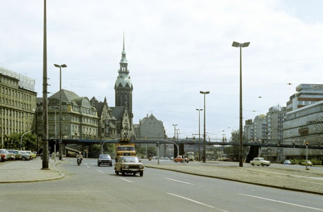 Leipzig has been a trade city since at least the time of the Holy Roman Empire. The city sits at the intersection of the Via Regia and the Via Imperii, two important medieval trade routes. Leipzig was once one of the major European centres of learning and culture in fields such as music and publishing.[13] After the Second World War and during the period of the German Democratic Republic (East Germany) Leipzig remained a major urban centre in East Germany, but its cultural and economic importance declined. Events in Leipzig in 1989 played a significant role in precipitating the fall of communism in Central and Eastern Europe, mainly through demonstrations starting from St. Nicholas Church. The immediate effects of the reunification of Germany included the collapse of the local economy (which had come to depend on highly polluting heavy industry), severe unemployment, and urban blight. Starting around 2000, however, the decline was first arrested and then reversed and, since then, Leipzig has seen significant changes with the restoration of major historical buildings, the demolition of derelict properties of little historical value, and the development of new industries and a modern transport infrastructure.