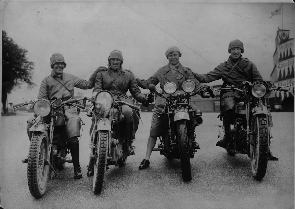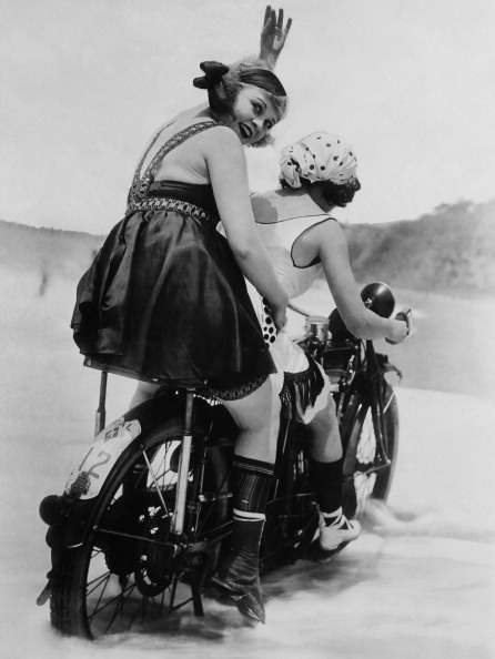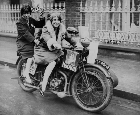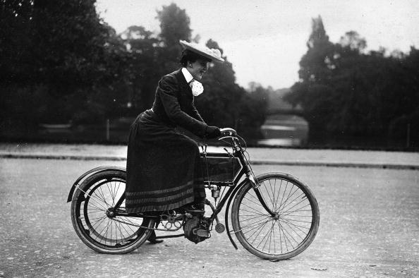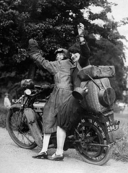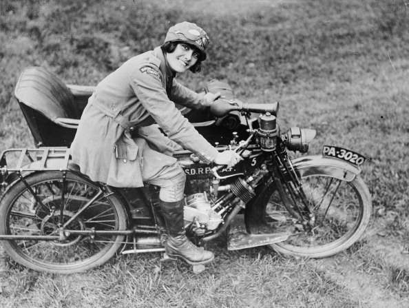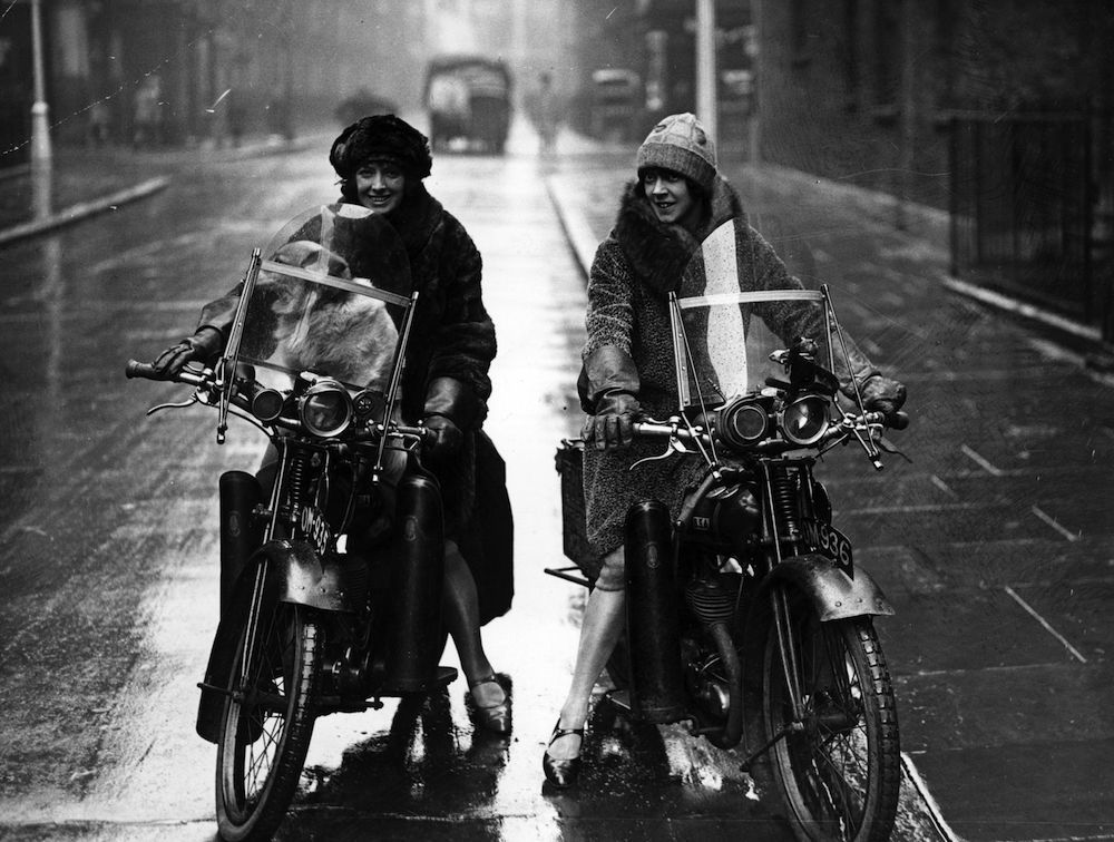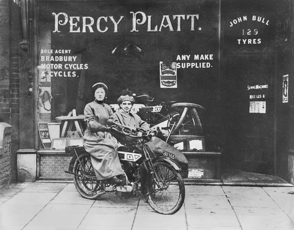 Two ladies astride an 1895 Crank Drive Motorcycle (r) and a 500 New Imperial Twin (l), which has reached 114 mph at Brooklandscirca 1925: A woman on a beach in California with her Harley Davidson and boyfriend, who is sitting in the side car. Santa Monica, California. 1920The Women’s Royal Air Force (WRAF) During The First World War, A motorcyclist with the Women’s Royal Air Force (WRAF) on a Clyno motorcycle combination, circa 1916.Percy Platt’s Motor Cycle Shop in Union Street. Oldham, Manchester, c1915. Portrait of two motorcyclists, a man and a woman, standing together with their vehicles, ca1910, United States 19051905circa 1940: Ministry of Information dispatch riders on their motorbikes.circa 1935: A rather large woman riding a mini-autobike.Tiny Griffin preparing to take part in a South California Bicycle Parade at Ocean Park.Marjorie Dare (Doris Smith) riding with around ‘The Wall of Death’ sideshow at the Kursaal amusement park in Southend, Essex, 1938.9th January 1927: A woman entrant in the Ladies only Motor Cycle Reliability Trial at Alexandra Palace, London. 1926: A competitor at the Ladies’ Bike Trials at Alexandra Palace, north London. 23rd September 1925: The Debenham sisters wearing fur and waterproof clothing for the winter motorcyclist. The women are riding BSA cycles. 1925: Two women set off on a BSA motorbike to play tennis after work.circa 1925: Women of Achille Serre Ltd’s Private Fire Brigade setting off on their motorcycle and sidecar to compete in the London Private Fire Brigades’ Tournament. They are defending champions in the women’s events.22nd August 1925: Miss E Foley and Miss L Ball on their motorcycles at the International Six Days Reliability Trials at Brooklands race track. September 1923: Three women waiting to start their midget motorcycle race.March 1923: A woman on a Velocette motorcycle at the ACU Trials in Birmingham.August 1917: Woman despatch rider for the A I D during World War I.circa 1920: Four women motorcycle racers in Germany, including Marjorie Cottle.June 1921: A woman riding a horse alongside a woman on a motorcycle in Hyde Park, London.3rd November 1920: British comic actor Leslie Henson (1891 – 1957) and his wife Madge Saunders at Slough.