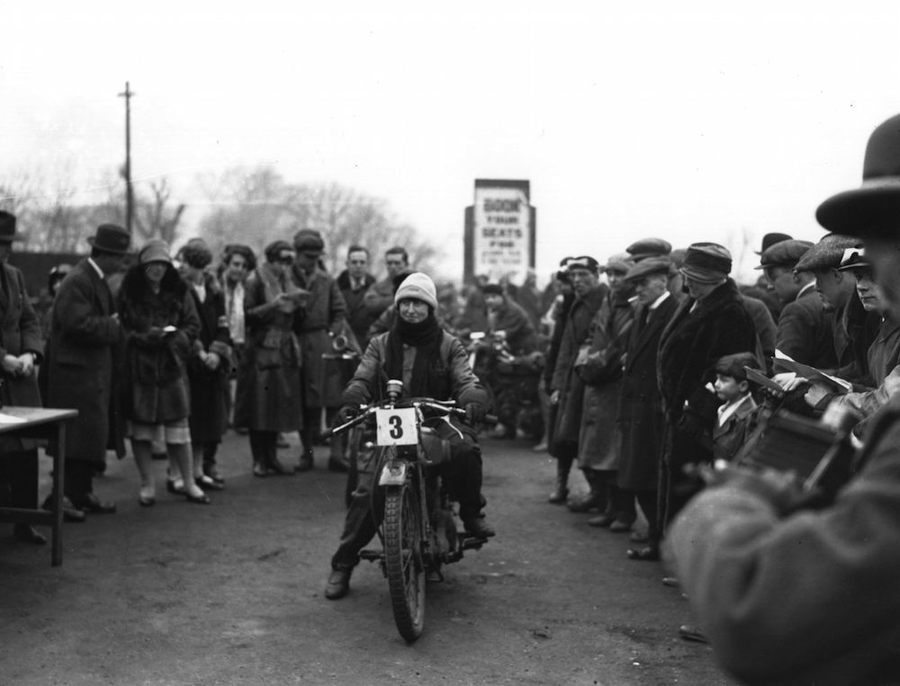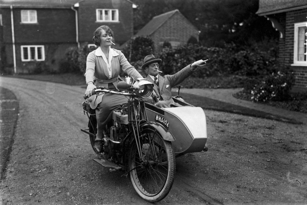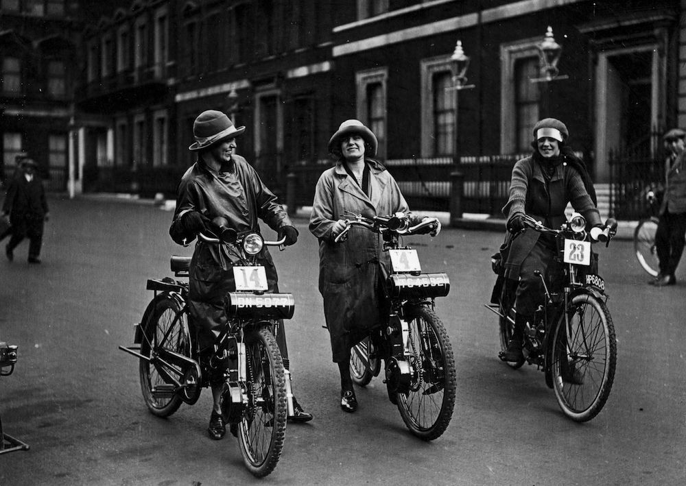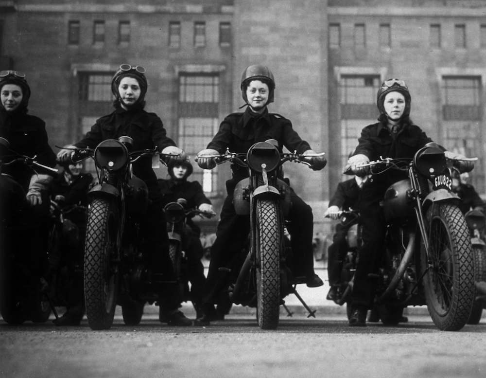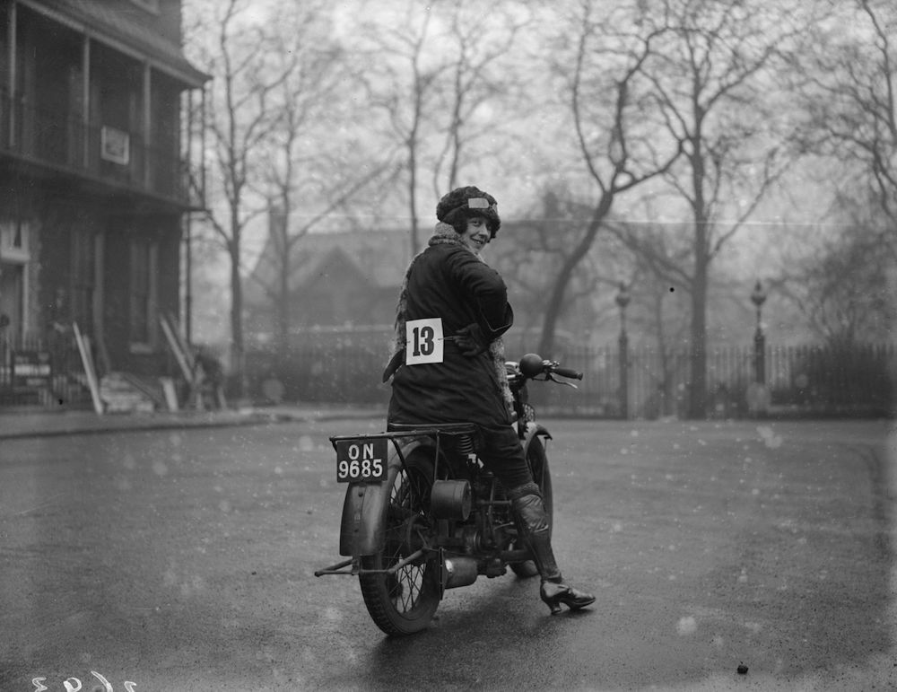 Two ladies astride an 1895 Crank Drive Motorcycle (r) and a 500 New Imperial Twin (l), which has reached 114 mph at Brooklandscirca 1925: A woman on a beach in California with her Harley Davidson and boyfriend, who is sitting in the side car. Santa Monica, California. 1920The Women’s Royal Air Force (WRAF) During The First World War, A motorcyclist with the Women’s Royal Air Force (WRAF) on a Clyno motorcycle combination, circa 1916.Percy Platt’s Motor Cycle Shop in Union Street. Oldham, Manchester, c1915. Portrait of two motorcyclists, a man and a woman, standing together with their vehicles, ca1910, United States 19051905circa 1940: Ministry of Information dispatch riders on their motorbikes.circa 1935: A rather large woman riding a mini-autobike.Tiny Griffin preparing to take part in a South California Bicycle Parade at Ocean Park.Marjorie Dare (Doris Smith) riding with around ‘The Wall of Death’ sideshow at the Kursaal amusement park in Southend, Essex, 1938.9th January 1927: A woman entrant in the Ladies only Motor Cycle Reliability Trial at Alexandra Palace, London. 1926: A competitor at the Ladies’ Bike Trials at Alexandra Palace, north London. 23rd September 1925: The Debenham sisters wearing fur and waterproof clothing for the winter motorcyclist. The women are riding BSA cycles. 1925: Two women set off on a BSA motorbike to play tennis after work.circa 1925: Women of Achille Serre Ltd’s Private Fire Brigade setting off on their motorcycle and sidecar to compete in the London Private Fire Brigades’ Tournament. They are defending champions in the women’s events.22nd August 1925: Miss E Foley and Miss L Ball on their motorcycles at the International Six Days Reliability Trials at Brooklands race track. September 1923: Three women waiting to start their midget motorcycle race.March 1923: A woman on a Velocette motorcycle at the ACU Trials in Birmingham.August 1917: Woman despatch rider for the A I D during World War I.circa 1920: Four women motorcycle racers in Germany, including Marjorie Cottle.June 1921: A woman riding a horse alongside a woman on a motorcycle in Hyde Park, London.3rd November 1920: British comic actor Leslie Henson (1891 – 1957) and his wife Madge Saunders at Slough.