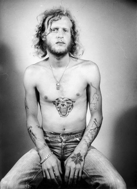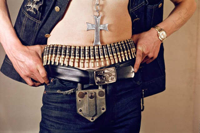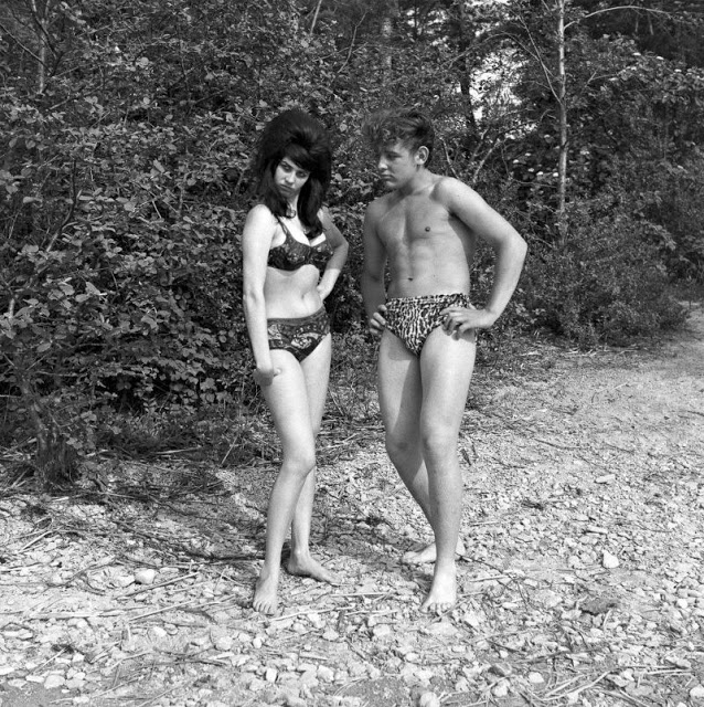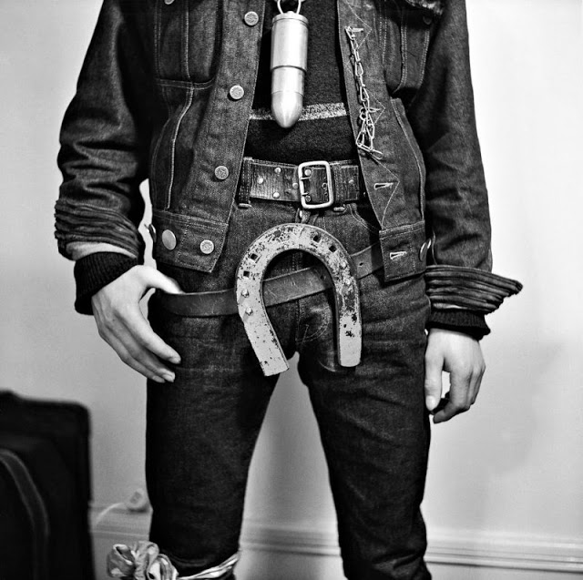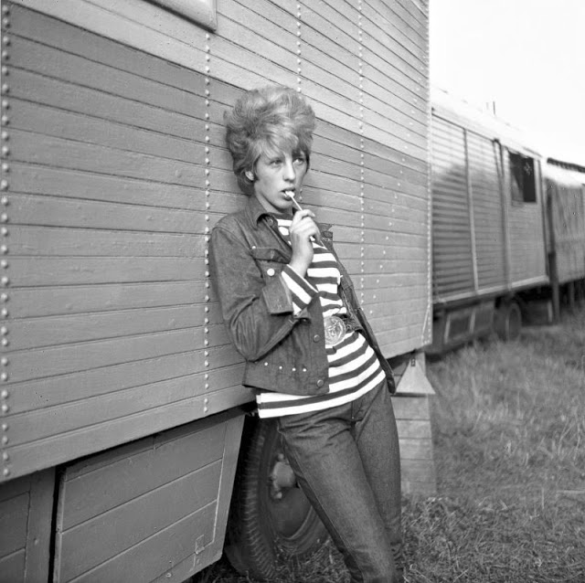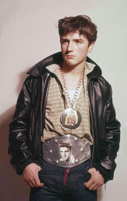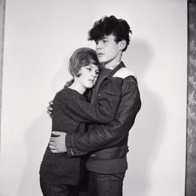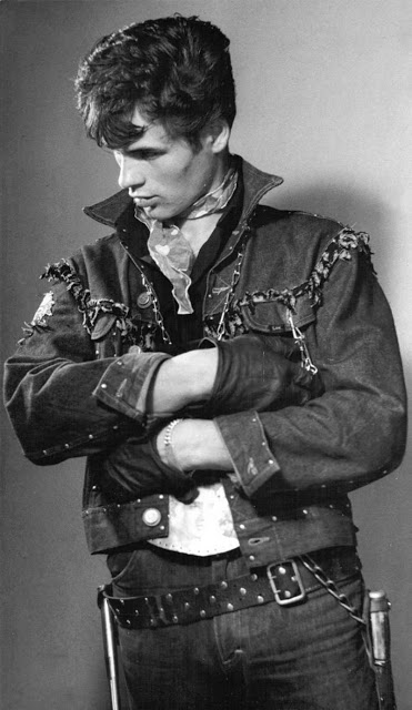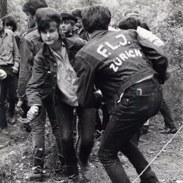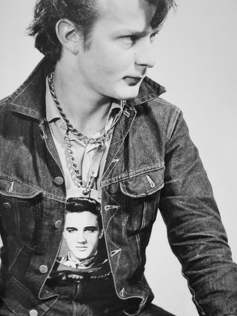 According to The Selvedge Yard, in 1958, Karlheinz Weinberger met a member of a small band of teenagers and began photographing them both at his home studio as well as at the public parks and carnivals where they gathered. In post war Switzerland, these self-named “rebels” were comprised of working class boys and girls dissatisfied with the conservative and conforming culture of the day. Inventing their own code of behavior and dress they affected a powerful gang identity expressed by an affinity for like-minded American imports such as James Dean, Elvis, blue jeans and motorbikes.