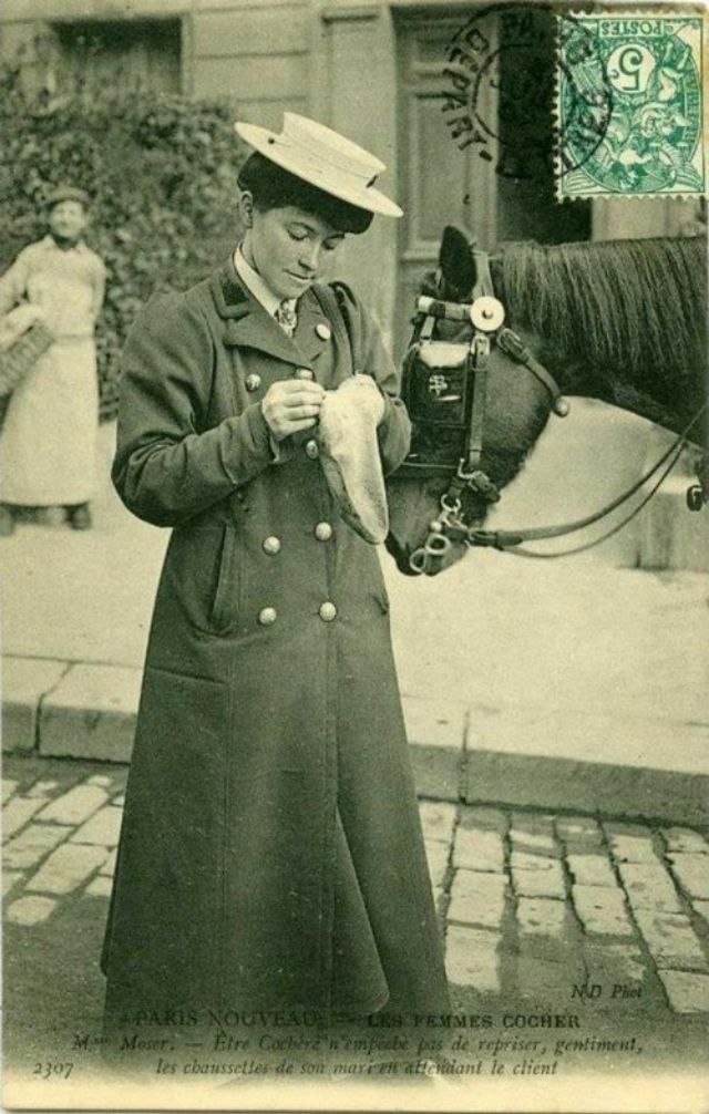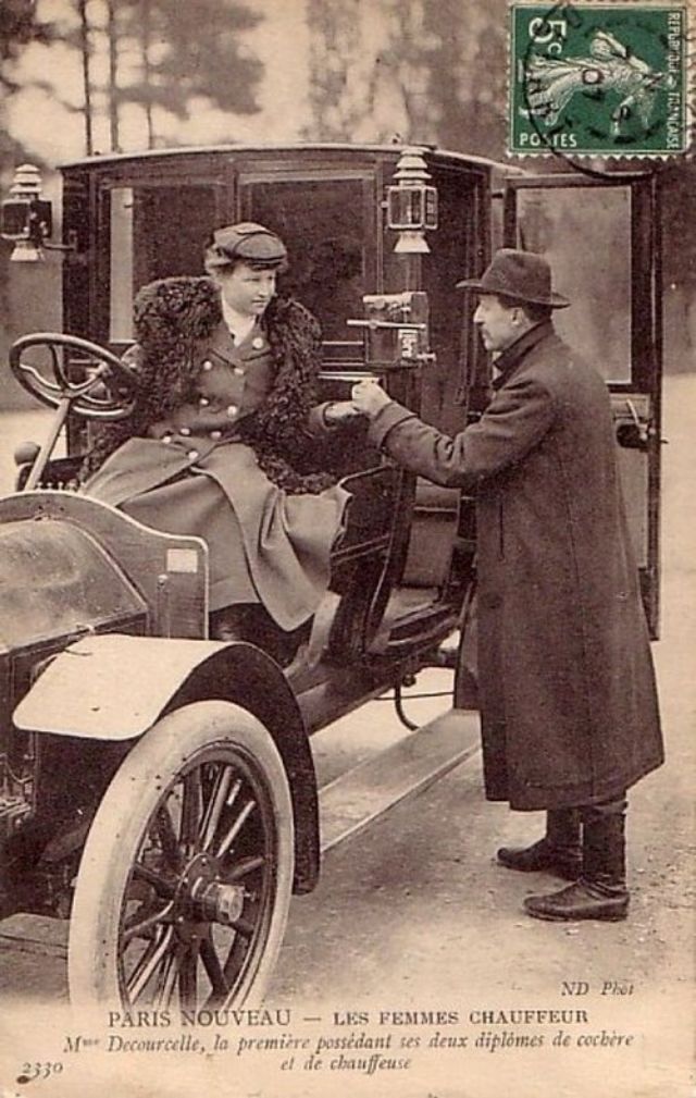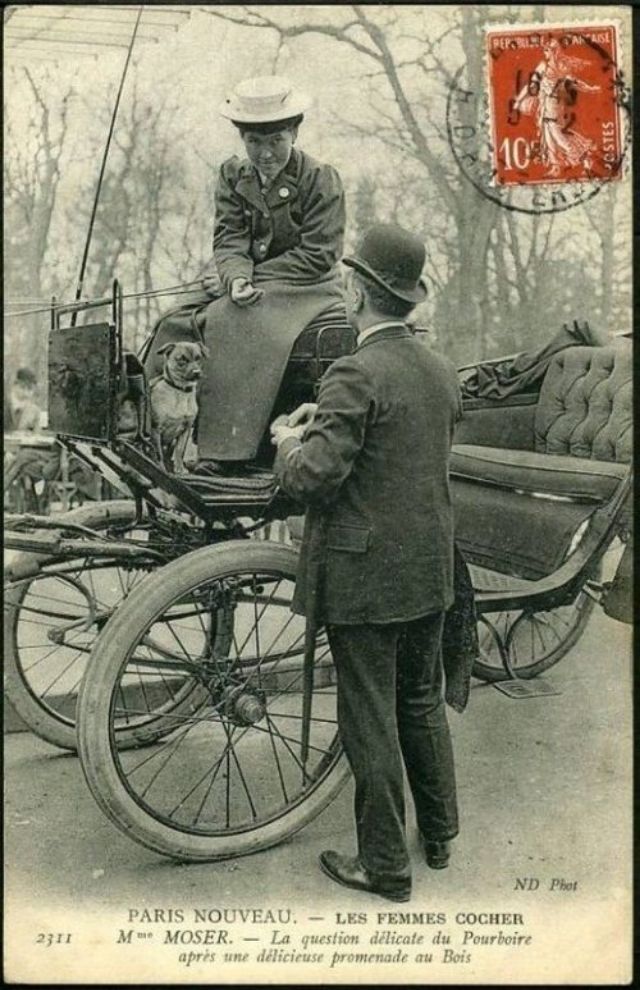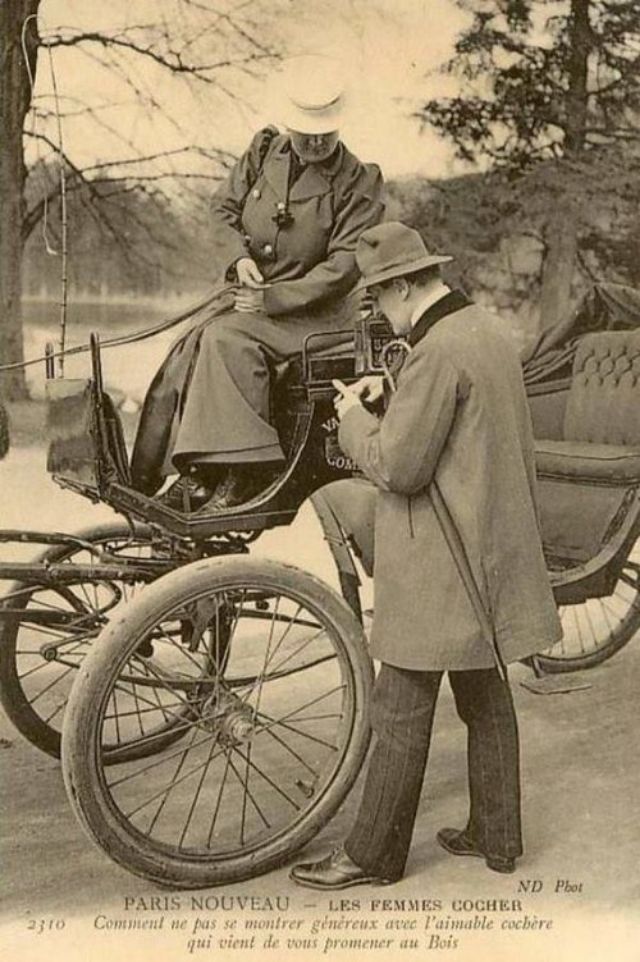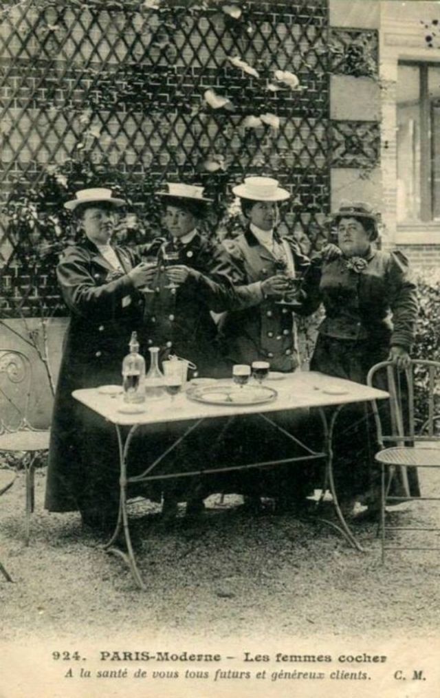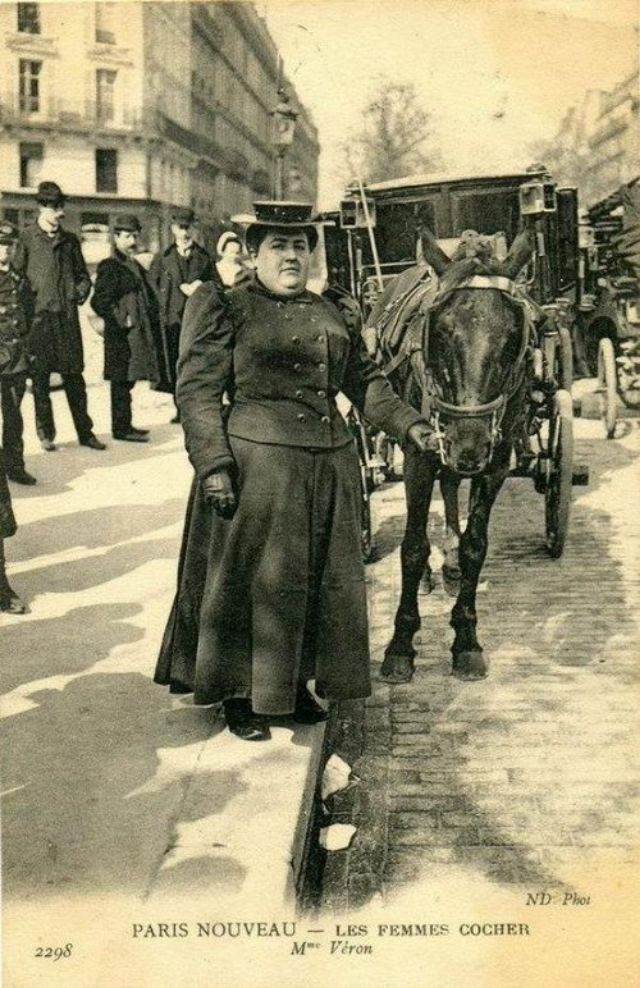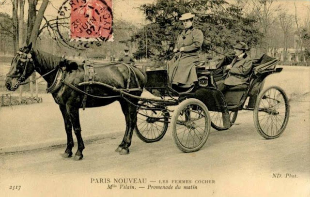 In November, 1906, three women began a month-long apprenticeship in preparation for the Prefecture of Police examination that would qualify them to drive horse cabs in Paris. Several other women were accepted into the apprenticeship program soon afterward.