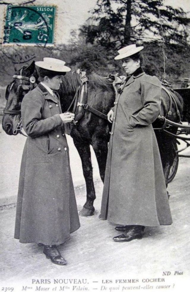 Depending on grammatical preference, the women were referred to as “femmes cocher”, “femmes cochers”, “femmes cochères” or simply “cochères”.