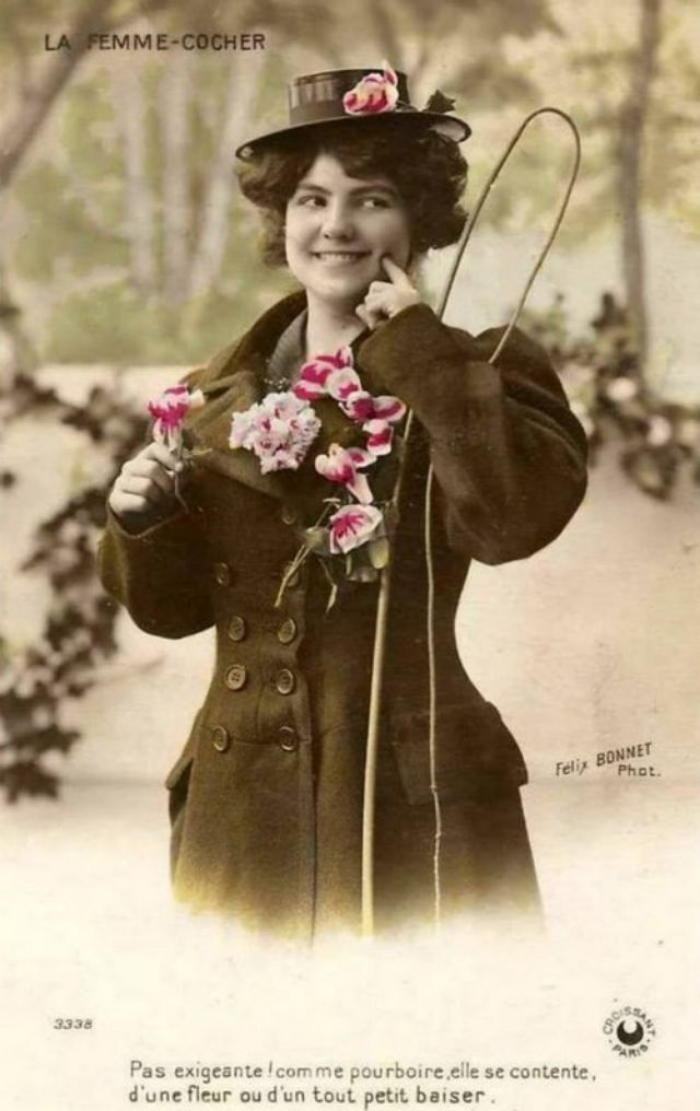 Luckily for us, the femmes cocher phenomenon coincided with an international postcard mania which reached its height between 1900 and 1918. The mania reflected an insatiable public hunger for pictures, a hunger which illustrated magazines and newspapers did not yet monopolize.