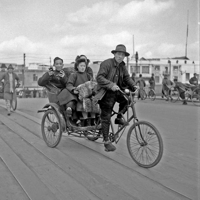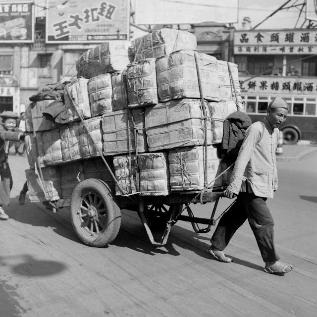 These vintage photographs, taken by Mark Kauffman (1921-1994), depict some of the many and various human-powered vehicles to be found on the streets of Shanghai in 1947.