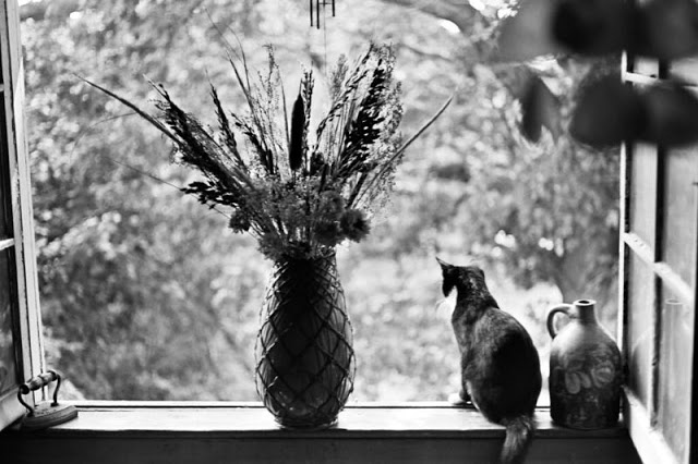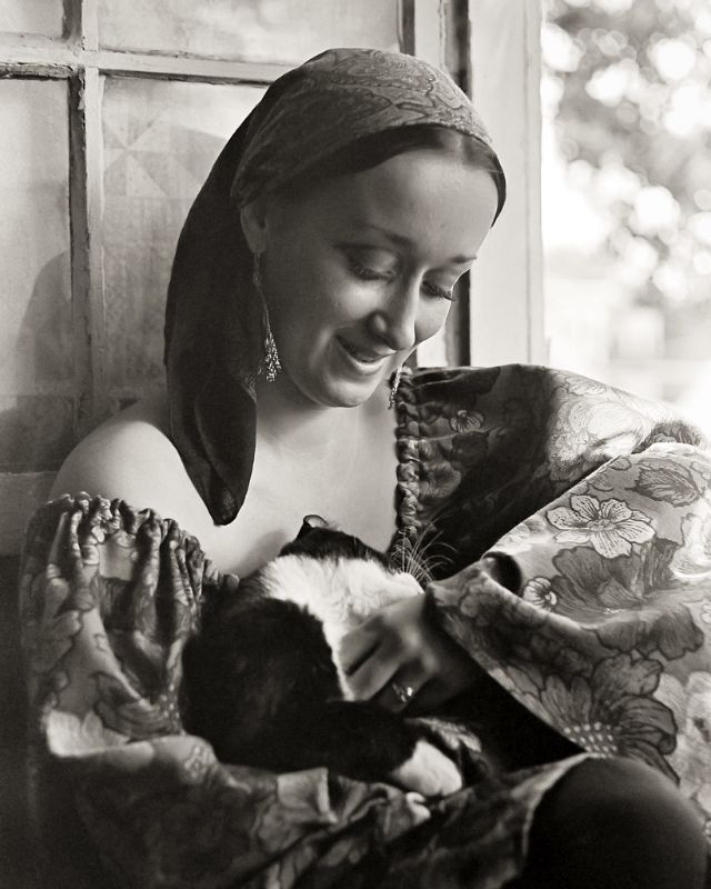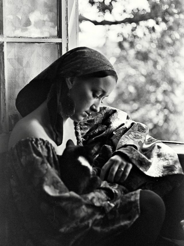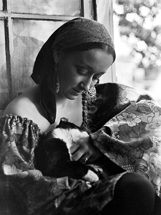 These lovely pics were taken by Barry Cunningham that show a tuxedo cat named Heba from the Evans Street Resistance commune in Dorchester, MA in summer of 1968. One where he poses as part of a still life. Several more where he is being shamelessly cute, soaking up Diane’s affection (name of the girl holding him).