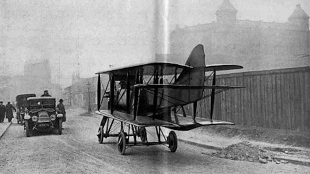 In 1921 René Tampier tackled the problem of designing an aircraft that was self-propelled and steerable on roads by including a second, low-powered engine driving the main landing wheels through a standard car-type transmission. The roadwheels were completed with a retractable pair nearer the tail. These were steerable, so on the road the Tampier Avion-Automobile, with its wings and tailplane folded, travelled tail first. Only two prototypes were built.