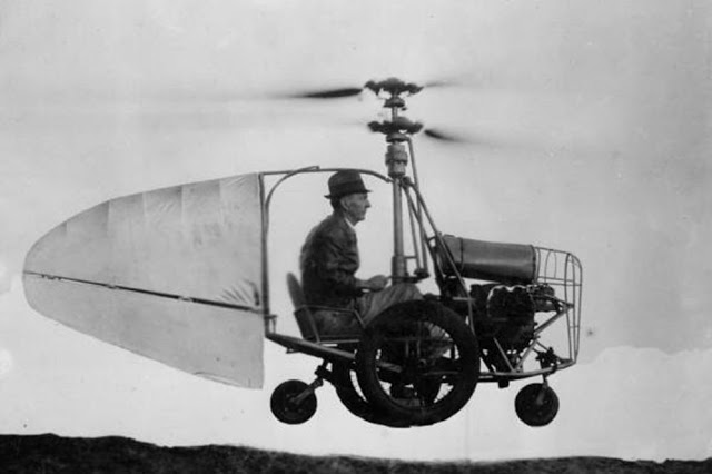 This flying car is almost a legend, and besides this photo and a brief mention of the vehicle in a newspaper clipping from Andalusia, Alabama, it might as well have not existed at all. According to the story, the photo above is of Jess Dixon; it was supposedly taken sometime around 1940. Although it’s considered a flying car by aviation history buffs, the machine is actually closer to a “roadable helicopter,” due to the two overhead blades spinning in opposite directions. In other words, it’s a gyrocopter that can also roll.