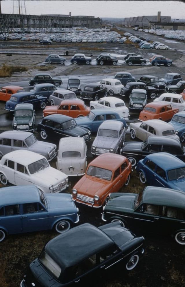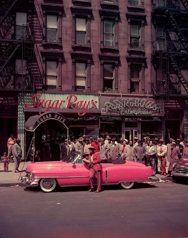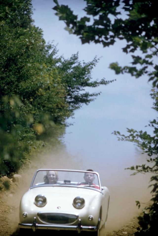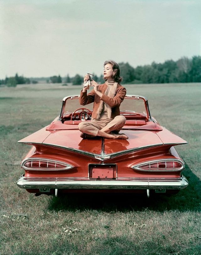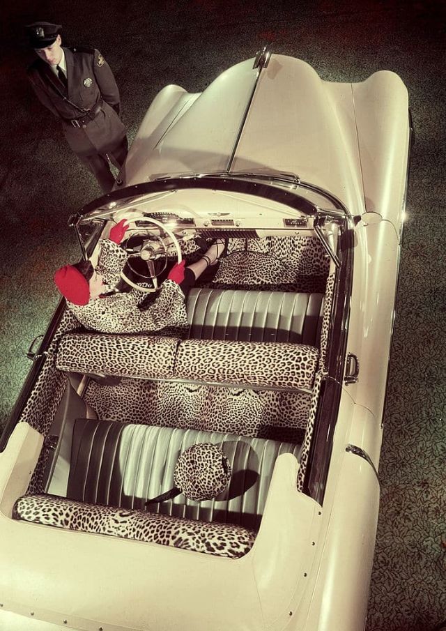 A Bristol 401 hellicopter and a Bristol car, 1950s.Boxer Sugar Ray Robinson leaning on his 1950 pink Cadillac convertible, Harlem, 1950s.A Cadillac ‘Debutante,’ with leopard print seat covers, New York, 1950.A Daimler Regency Saloon Convertible Coupe special series car, London, 1952.A 1952 Lincoln Capri, 1952.A Talbot Sunbeam car, 1952.Simca, Paris, 1952.Greenwich Village, New York, 1953.Car show, Jardins De Bagatelle, Boulogne, 1954.Mercedes W196 Silver Arrow car, 1954.Lincoln Capri, 1955.John Bryant with his AC sports car in Kinnerton Place, London SW1, 1955.Sports car rally, Virginia, 1955.Ford Thunderbird, Ford Fairlane Crown Victoria and Mercury Montclair Coup, 1955.The car park at the Fontainebleau Hotel, Miami, 1955.A Ford Zephyr convertible car on display, London, 1956.A Plymouth station wagon, Stowe, Vermont, 1956.An Oldsmobile Super 83 Holiday Coupe, 1956.Mercedes 190 SL convertible car, 1956.Marie-Helene Arnaud poses in the open door of a red MG convertible sports car, Paris, 1957.A model sitting on the wing-back of a red 1959 Chevrolet Impala Convertible, 1958.Japanese imported cars on display, 1958.Audience watching a motor racing in an open field, 1959.A young couple holding hands next to a 1959 Ford Thunderbird motor car, 1959.Cars parked at Tiny Naylor’s drive-in, 1959.A bubble-car Messerschmitt Roadster KR 200, Bavaria, 1959.Taxis parked on the quayside in Hamilton, the capital of Bermuda, 1959.Parents sitting inside a beach cave while watching their daughter on their red Mercury Monterey convertible, 1959.A British built Aston Martin DB4 two-door hardtop coupe right-hand drive car, 1959.A young couple drive in a 1958 Austin-Healey Sprite (Frogeye) car, 1959.