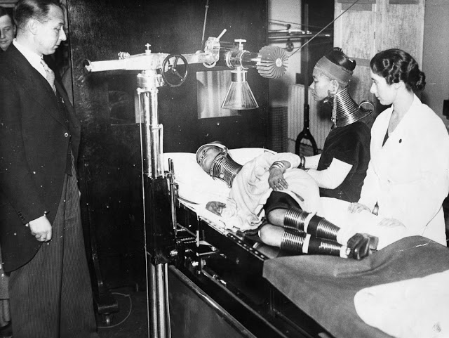 In the 1930s, circuses and sideshows were tremendously popular in the United Kingdom. Padaung women, advertised as “giraffe women,” were star attractions, drawing crowds of curious gawkers. Below are some of vintage photographs of Paduang women when they visited London in 1935.