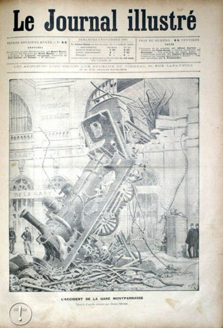 At first glance, the photos look like stills from an old disaster movie or a spectacular example of theme park scenery welcoming visitors to some wild new ride. However, these extraordinary images are actually testament to a real-life tragedy, the derailment of the Granville-Paris Express that on October 22, 1895 tore through the façade of the Gare Montparnasse, injuring a number of its conductors as well as a handful of passengers and claiming the life of a particularly unlucky mother of two.