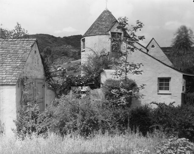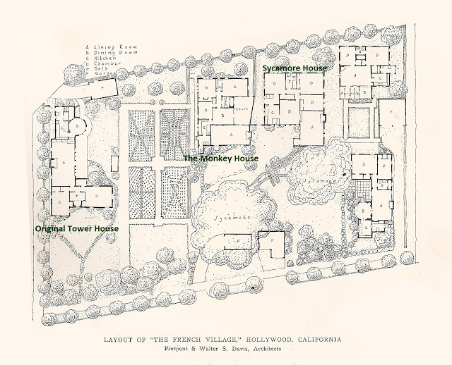 This little nestle of buildings was known as the French Village. It was set on a triangular plot of land at the point where Highland Avenue and Cahuenga Boulevard converged as they entered the Cahuenga Pass.South of France? No, Cahuenga and Highland!Original Tower House (1920-25)The surrounding gardens, which were later described as “the core of the little community,” were arranged with as much care as the cottages themselves.Tower HouseMinnie Muchmore’s Monkey HouseAs enchanting as the French Village was, its location sealed its doom from virtually the very outset.House of Jonah & the Whale, House of the Virgin Mary and the Henry IV studio.Gilbert Adrian’s Tower House studioFrench PavilionBridge to entranceGateThe French Village as completed 1920