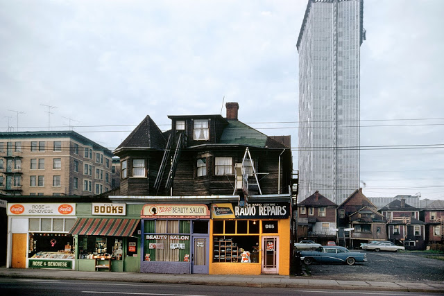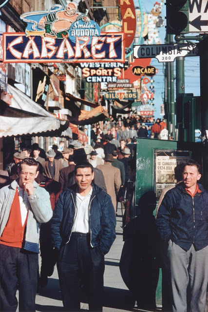 Family on Lawn, 1959Elysium Cleaners, 1958Hastings and Columbia Street, 1958Paris Cafe, 1959Squatter, Railroad Tracks, 1961Boys on Shed, 1962Howe and Nelson, 1960Newspaper Readers, 1961Second Hand Shop, Cordova, 1961New World Confectionery, 1965Rooming House, 1975