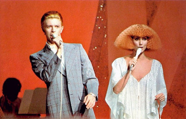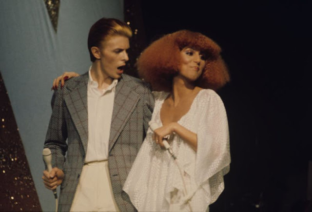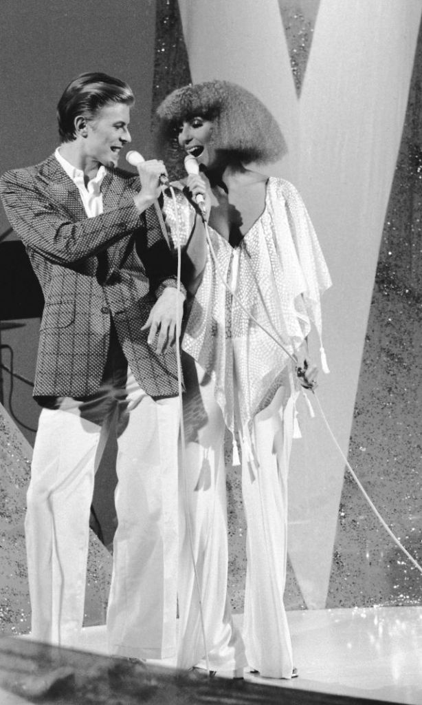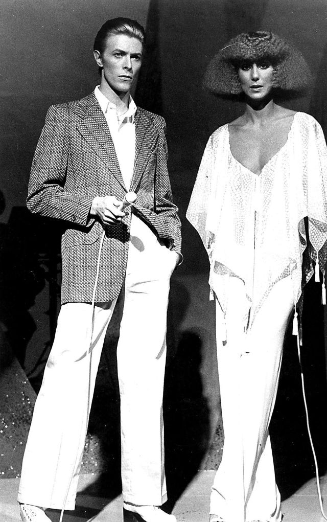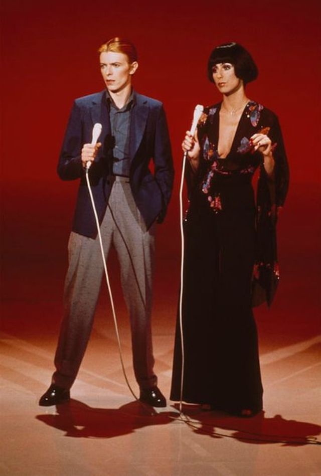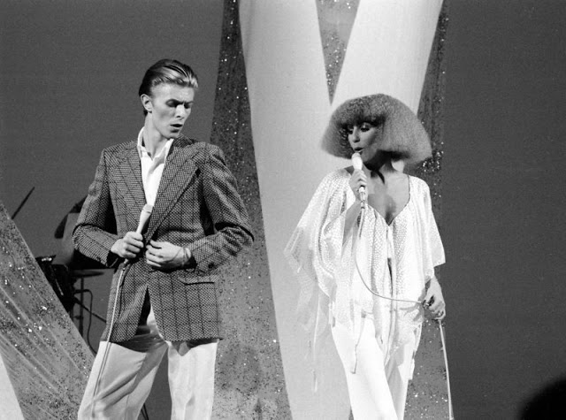 Here below is a photo set that shows David Bowie performing with Cher on her variety show in November 1975, shortly after reaching number one in the US charts for the first time with “Fame.”
