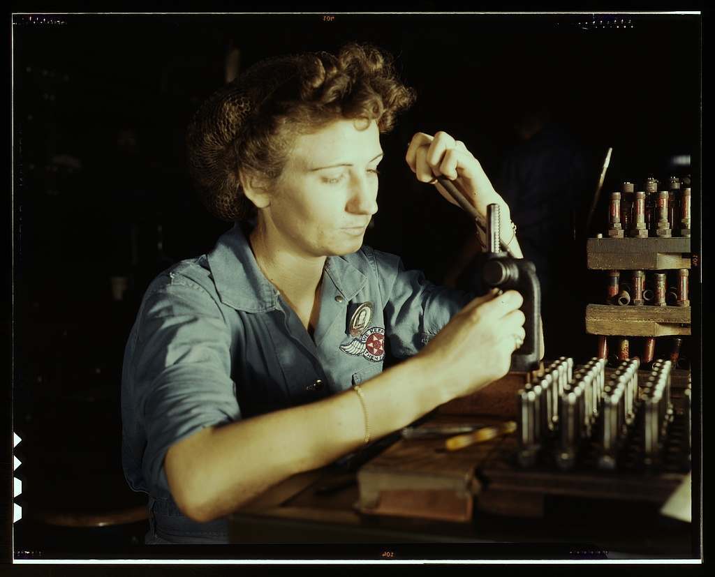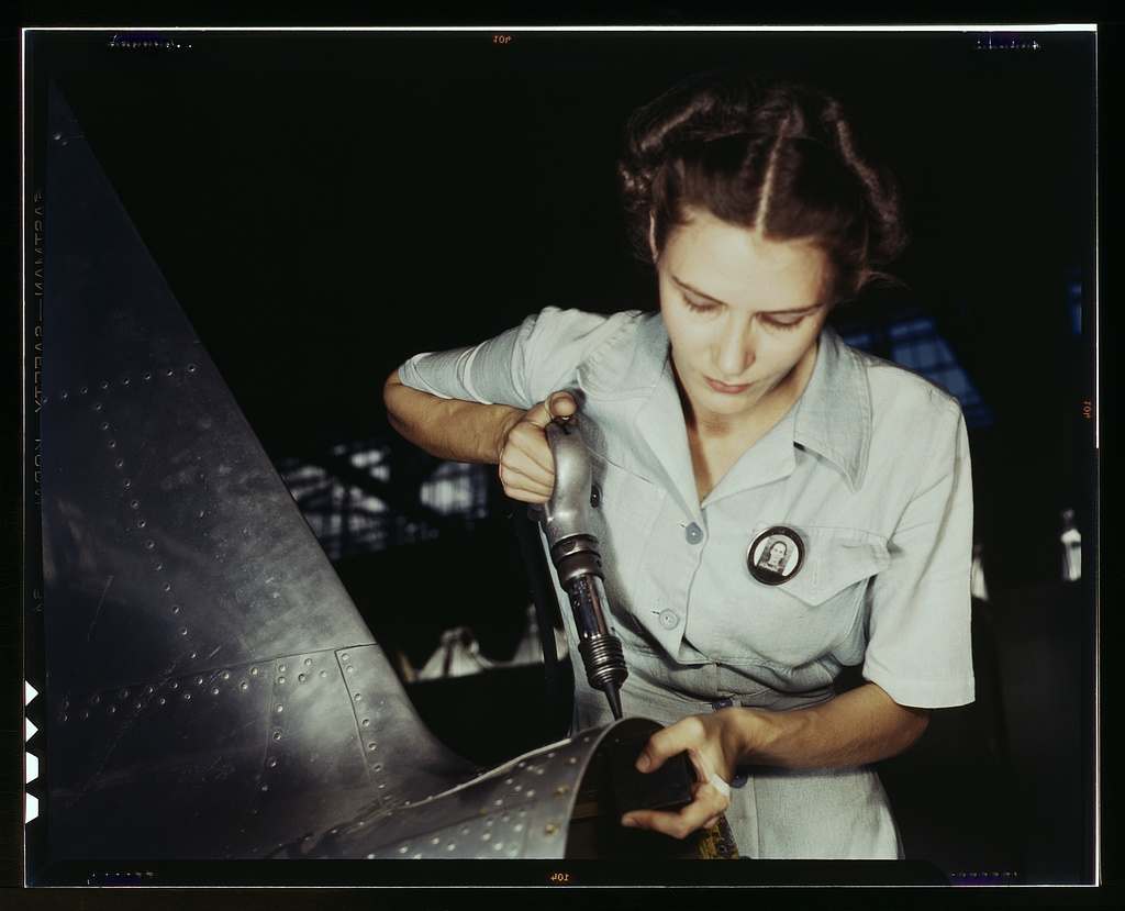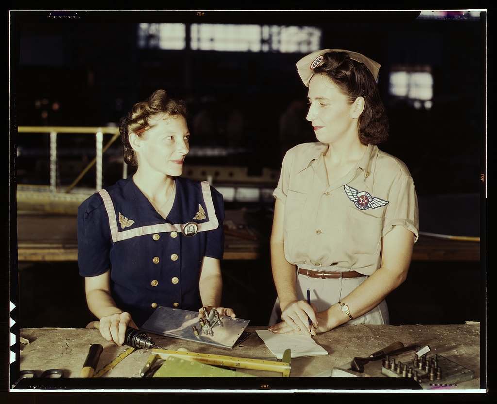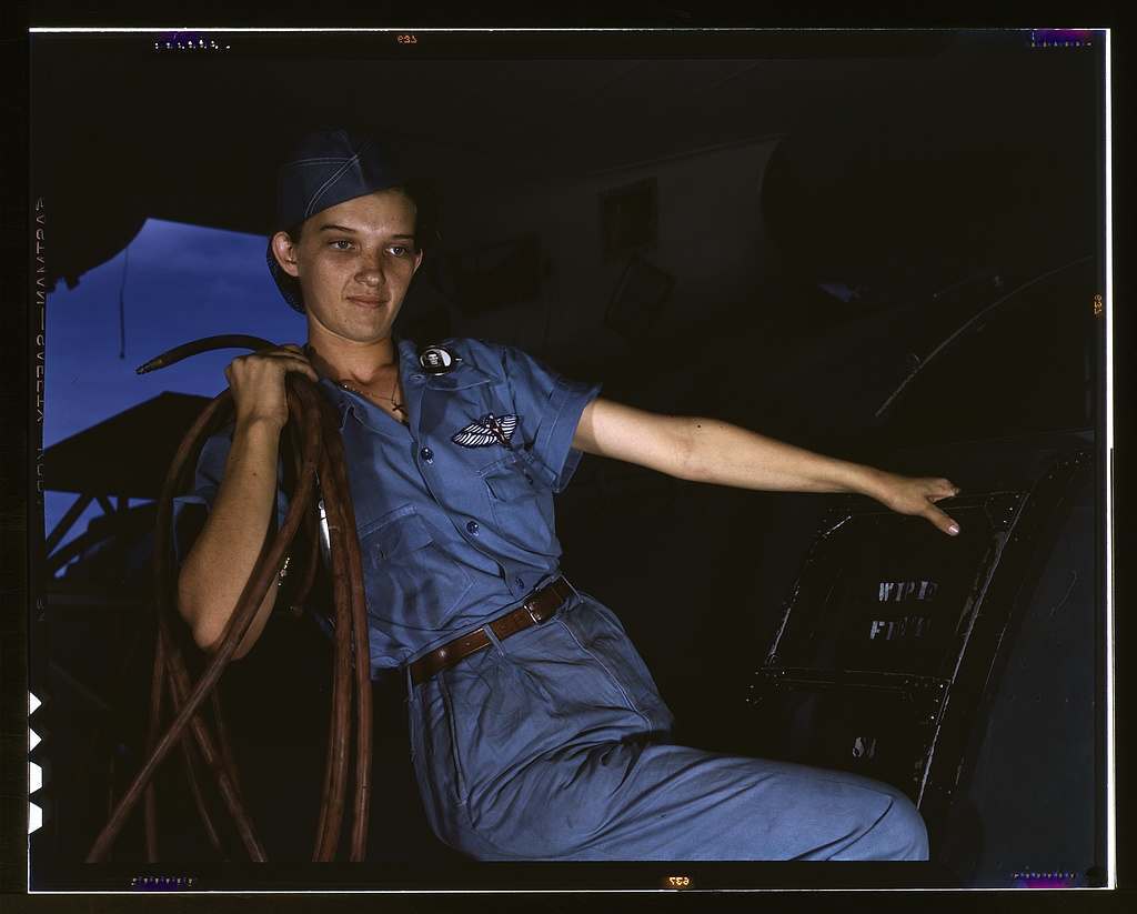 Answering the nation’s need for womanpower, Mrs. Virginia Davis made arrangement for the care of her two children during the day and joined her husband at work in the Naval Air Base, Corpus Christi, Texas. Both are employed under Civil Service in the Assembly and repair department. Mrs. Davis’ training will enable her to take the place of her husband should he be called by the armed serviceMrs. Doris Duke, who is 26 and a mother of one child, Corpus Christi, Texas. Mrs. Duke is a civil service worker in the A[ssembly] and R[epair] dept. at the Navy Air Base (shot – reconditioning spark plugs)Women are contributing their skills to the nation’s needs by keeping our country’s planes in top-notch fighting condition, Corpus Christi, Texas. Wife of a disabled World War I veteran, Mrs. Cora Ann Bowen (left) works as a cowler at the Naval Air Base. Mrs. Eloise J. Ellis is a senior supervisor in the Assembly and Repairs departmentFormerly a sociology major at the University of Southern California, Mrs. Eloise J. Ellis (right) now “keeps ’em flyin’” at the Naval Air Base, Corpus Christi, Texas. She is a supervisor under civil service in the Assembly and Repair Department. It is her job to maintain morale among the women by helping them solve housing and other personal problems. With her is Jo Ann Whittington, an NYA trainee at the plant.With a woman’s determination, Lorena Craig takes over a man-size job, Corpus Christi, Texas. Before she came to work at the Naval air base she was a department store girl. Now she is a cowler under civil service.Assembly and Repairs Dept. mechanic Mary Josephine Farley works on a Wright Whirlwind motor, Naval Air Base, Corpus Christi, Texas.“Women in white” doctor Navy planes (motors) at the Naval Air Base, Corpus Christi, Texas. Mildred Webb, an NYA trainee at the base, is learning to operate a cutting machine in the Assembly and Repair Department. After about eight weeks as an apprentice she will be eligible for a civil service job in the capacity for which she has been trained.Oyida Peaks riveting as part of her NYA training to become a mechanic at the Naval Air Base, in the Assembly and Repair Department, Corpus Christi, Texas.Mrs. Eloise J. Ellis, senior supervisor in the Assembly and Repairs Dept. of the Naval Air Base, talking with one of the men, Corpus Christi, Texas.Pearl Harbor widows have gone into war work to carry on the fight with a personal vengeance, Corpus Christi, Texas. Mrs. Virginia Young (right) whose husband was one of the first casualties of World War II, is a supervisor in the Assembly and Repairs Department of the Naval Air Base. Her job is to find convenient and comfortable living quarters for women workers from out of the state, like Ethel Mann, who operates an electric drill.Women from all fields have joined the production army, Corpus Christi, Texas. Miss Grace Weaver, a civil service worker at the Naval Air Base, and a school teacher before the war, is doing her part for victory along with her brother who is a flying instructor in the Army. Miss Weaver paints the American insignia on repaired Navy plane wings.A rivet is her fighting weapon. Oyida Peaks, daughter of a Navy lieutenant, one of many women taking NYA training to become mechanics at the Naval Air Base, Corpus Christi, Texas. After eight weeks apprenticeship she will be qualified as a civil service worker in the Assembly and Repair Department.Working in the Assembly and Repair Dept. of the Naval Air Base, Corpus Christi, Texas 1942.