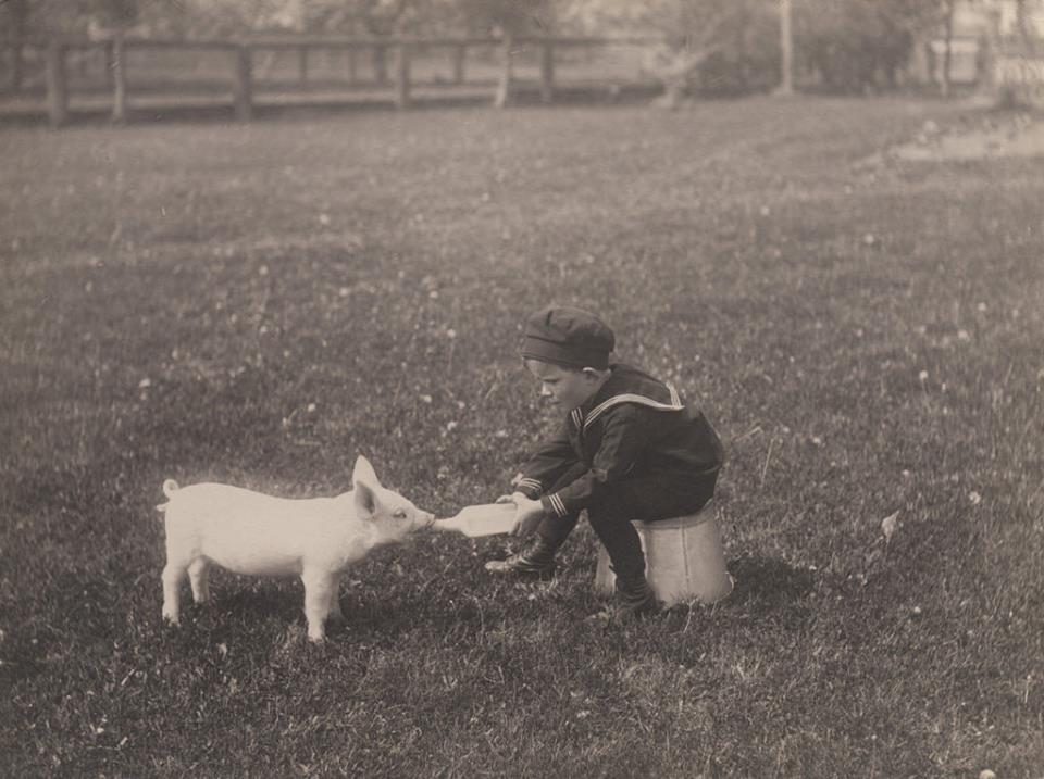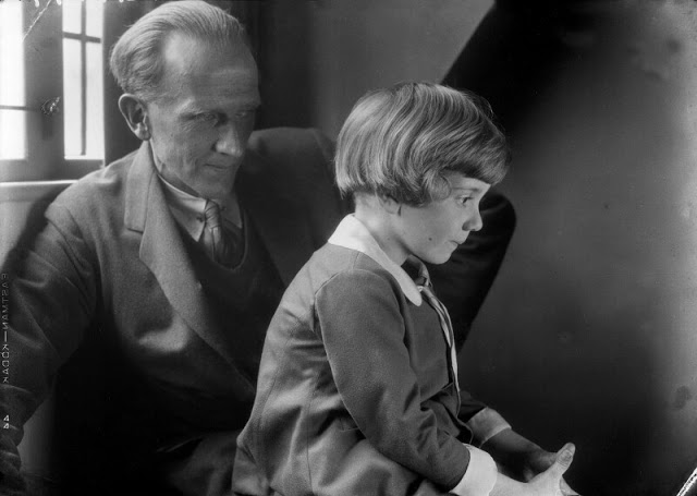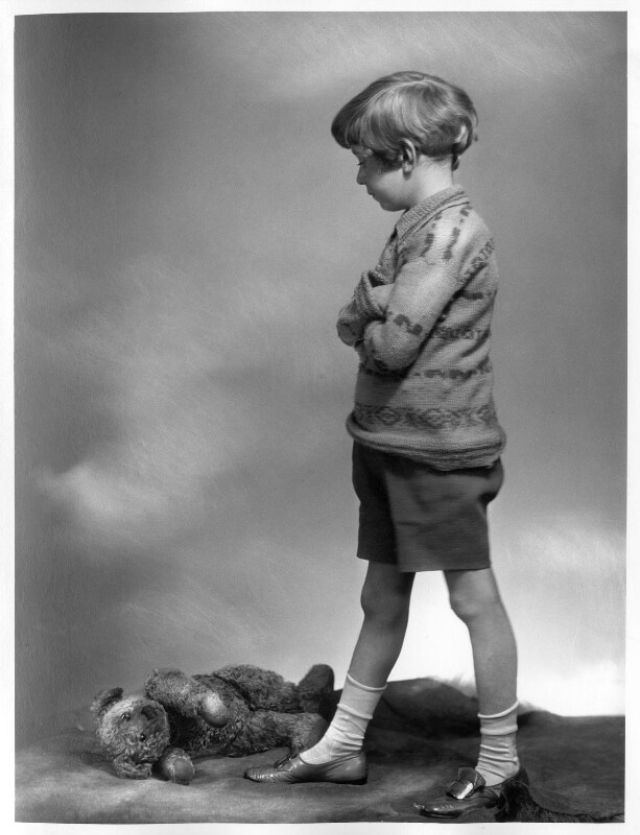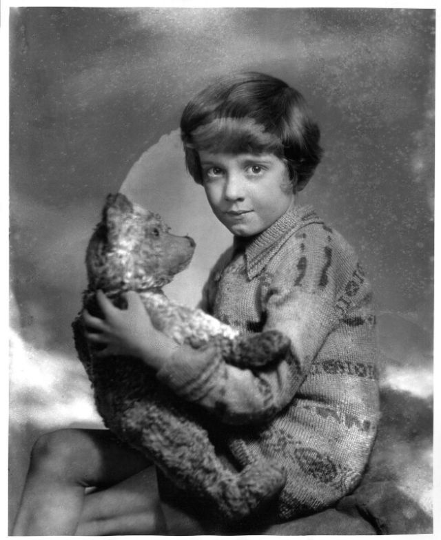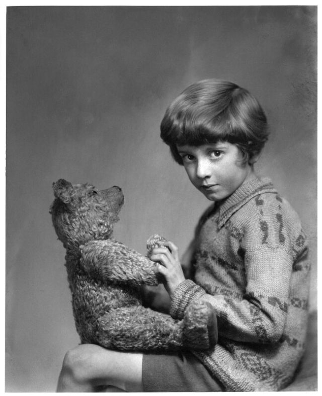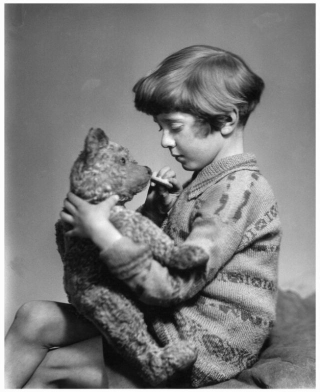 The images of Milne’s son Christopher Robin — the inspiration for Milne’s character of the same name who was Pooh’s best pal — were taken in 1926 and in 1928 (photos of Christopher Robin and his father.) Mini Milne and his stuffed bear — named Edward, a gift he received on his first birthday — sometimes come across semi-creepy, but in that charming, vintage-photo way.