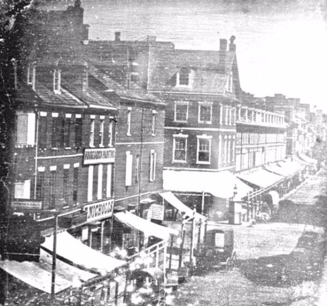 A view of 8th and Market streets downtown. It’s one of the earliest photos of the city, courtesy of Free Library of Philadelphia.
